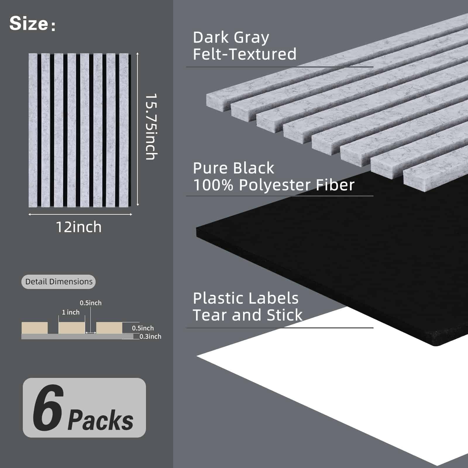1. PAQUETE INCLUYE: Recibirás 6 PCS 12 x 15.8 paneles de pared insonorizantes de fieltro de doble capa, con forma rectangular y diseño lateral para una conexión más natural, adecuados para diversos tratamientos acústicos y decoración del hogar, tanto práctica como hermosa. 2. SEGURIDAD DE MATERIAL Y AUTOADHESIVO: Nuestros paneles acústicos a rayas de doble capa están hechos de fibra de poliéster 100%, que es ignífuga, no tóxica y sin olor. Es seguro respirar y tocar, y la parte trasera está diseñada con adhesivo autoadhesivo, lo que facilita la instalación. 3. ABSORCIÓN DE SONIDO EFICAZ Y REDUCCIÓN DE RUIDO: La densidad del panel de sonido es de 9.7 lb/ft3, con un coeficiente de reducción de ruido de 0.92. Puede ser utilizado para el tratamiento acústico in situ de ruido, eco, reverberación, etc. Se recomienda instalar los paneles de pared insonorizantes artísticos alrededor del área que necesita absorber el ruido. 4. AMPLIAMENTE UTILIZADO: El panel acústico artístico de doble capa mejorará el efecto acústico de la habitación y puede ser ampliamente utilizado para el tratamiento acústico in situ en salas de grabación, salas vocales, salas de cine en casa, paredes de televisión, etc. El rendimiento decorativo artístico moderno del panel en sí mismo también se puede utilizar para mejorar la atmósfera artística del espacio. Cuanto mayor sea el rango de cobertura del panel, mejor será el efecto de absorción de sonido. 5. GARANTÍA DE SERVICIO POST-VENTA: Le proporcionaremos un servicio post-venta de alta calidad. Si no está satisfecho con el producto o si hay algún problema con su pedido, no dude en contactarnos en cualquier momento. Nuestro equipo de servicio al cliente profesional le proporcionará soluciones profesionales.