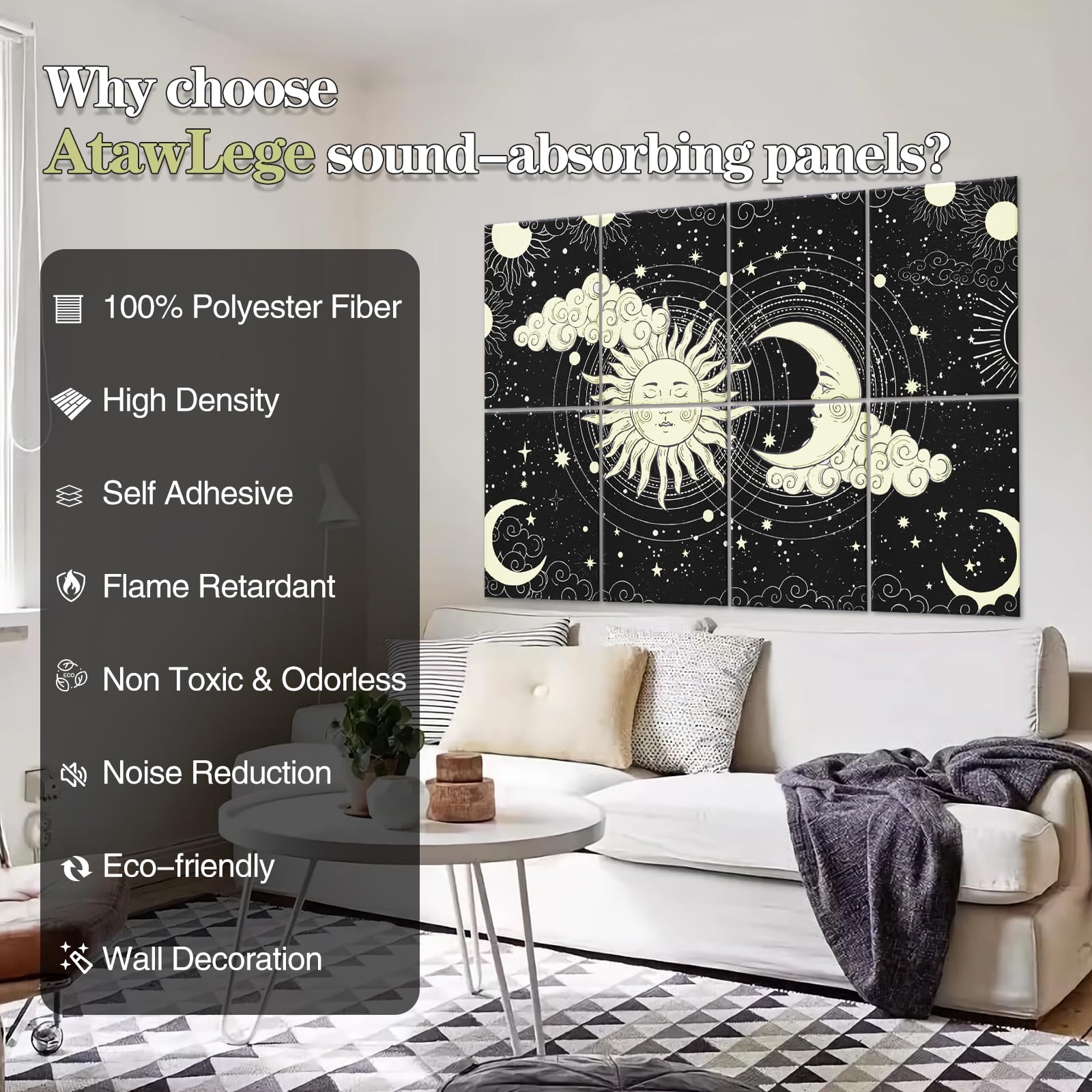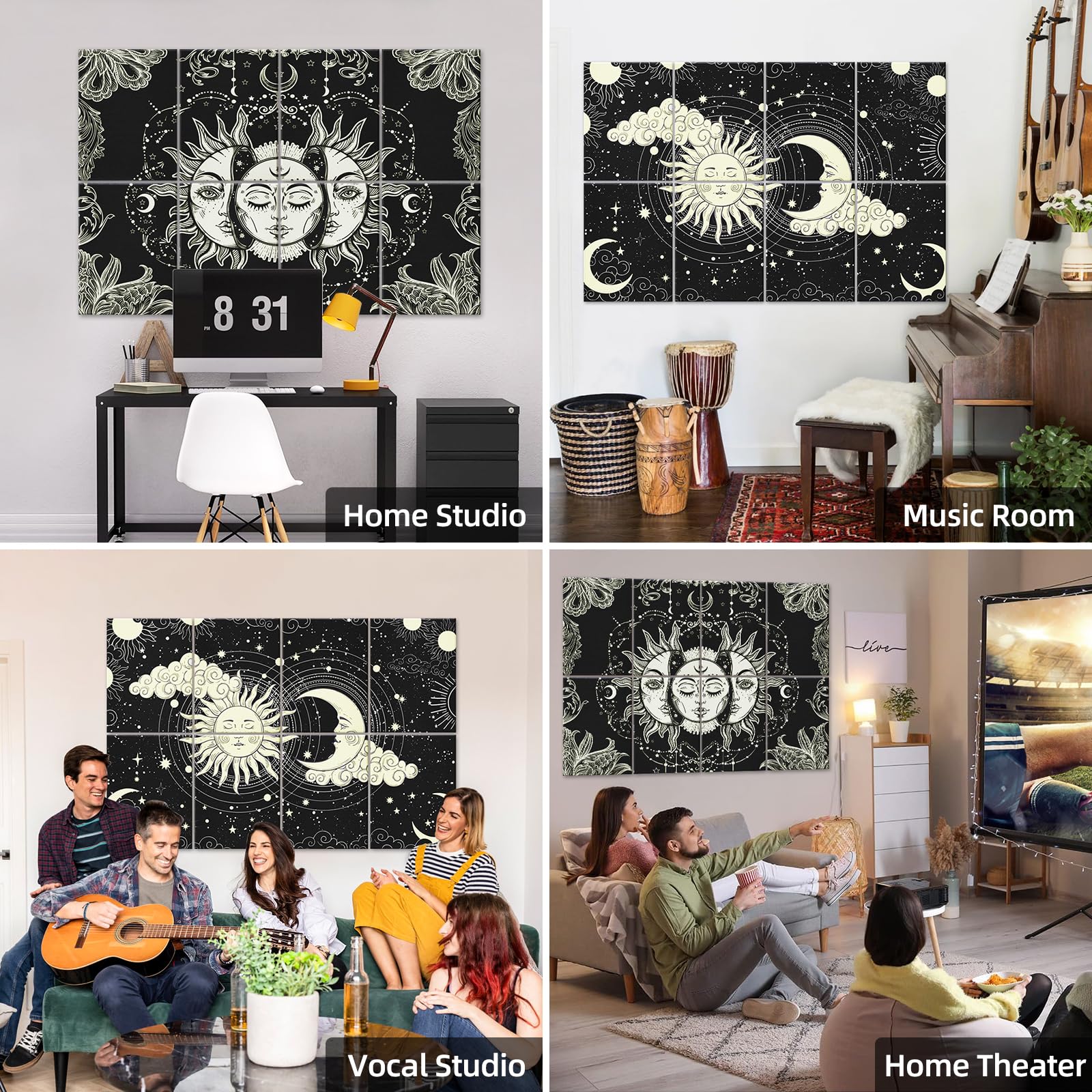 1. PAQUETE INCLUYE: Recibirás 8 piezas de paneles acústicos de pared de arte retro, combinando elementos retro como el sol, la luna, flores y plantas. Combinando reducción de ruido absorbente de sonido con decoración de pared. Puedes añadir colores misteriosos y diseños destacados a tu espacio. 2. SEGURIDAD DEL MATERIAL Y AUTOADHESIVO: Los paneles acústicos de arte retro están hechos de fibra de poliéster 100%, que es retardante de llamas, no tóxica e inodora. Es seguro para respirar y tocar, y la parte trasera está diseñada con adhesivo autoadhesivo, facilitando la instalación. 3. AMPLIO USO: Este panel de pared de sonido de arte mejorará el efecto acústico de la habitación y se puede utilizar ampliamente para el tratamiento acústico in situ en salas de grabación, salas vocales, teatros en casa, paredes de TV, etc. También es muy adecuado como regalo para amigos que aman los elementos misteriosos. 4. REDUCCIÓN EFECTIVA DE RUIDO: La densidad de nuestros paneles acústicos es de 9.7lb/ft3, y el coeficiente de absorción de ruido es de 0.92. Puede utilizarse para el procesamiento acústico in situ de ruido, eco, reverberación, etc. Además, también tiene cierto efecto en mejorar la claridad y calidad del sonido. 5. GARANTÍA DE SERVICIO POSTVENTA: Te proporcionaremos un servicio postventa de alta calidad. Si no estás satisfecho con el producto o si hay algún problema con tu pedido, no dudes en ponerte en contacto con nosotros en cualquier momento. Nuestro equipo de servicio al cliente profesional te proporcionará soluciones profesionales.