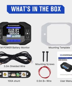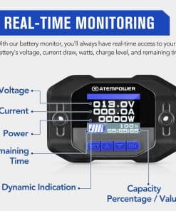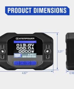 ATEM POWER 12V 100A Battery Monitor with Shunt Wire es un dispositivo innovador que te permite monitorear con precisión el rendimiento de tu batería 12V en tiempo real. Con una precisión de medición del 1%, este monitor de batería es mucho más preciso que otros monitores basados en voltaje. Gracias al shunt de la batería conectado al circuito negativo, puedes monitorear la energía real que fluye dentro y fuera de la batería, lo que te brinda información detallada sobre voltaje, corriente, vatios, nivel de carga y tiempo restante.