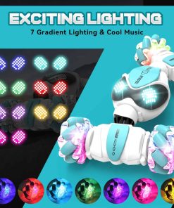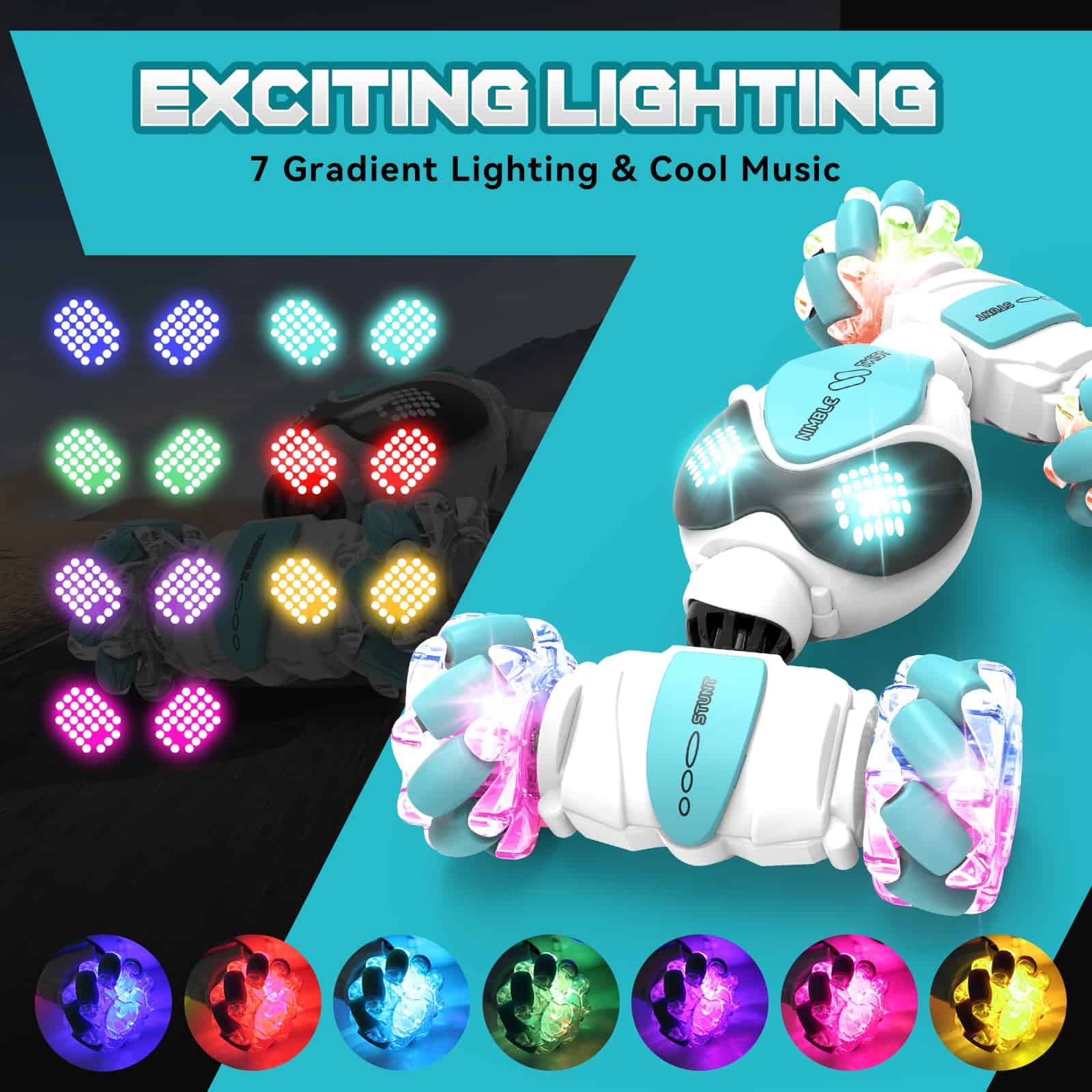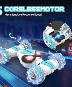 4. Acrobacias y Drift Todo Terreno: El coche de acrobacias RC ATHLERIA cuenta con luces coloridas y efectos de música. Puede realizar demostraciones automáticas, drift en todas direcciones, rotación de 360°, conducción de doble cara, acrobacias cruzando obstáculos, cambio libre entre los modos de carretera y todoterreno, subir colinas en incrementos de 45°, movimiento giratorio de serpiente y deslizamiento lateral, etc. ¡Funciones geniales y diversión ilimitada ofrecen a los niños una maravillosa experiencia de operación y efectos visuales!