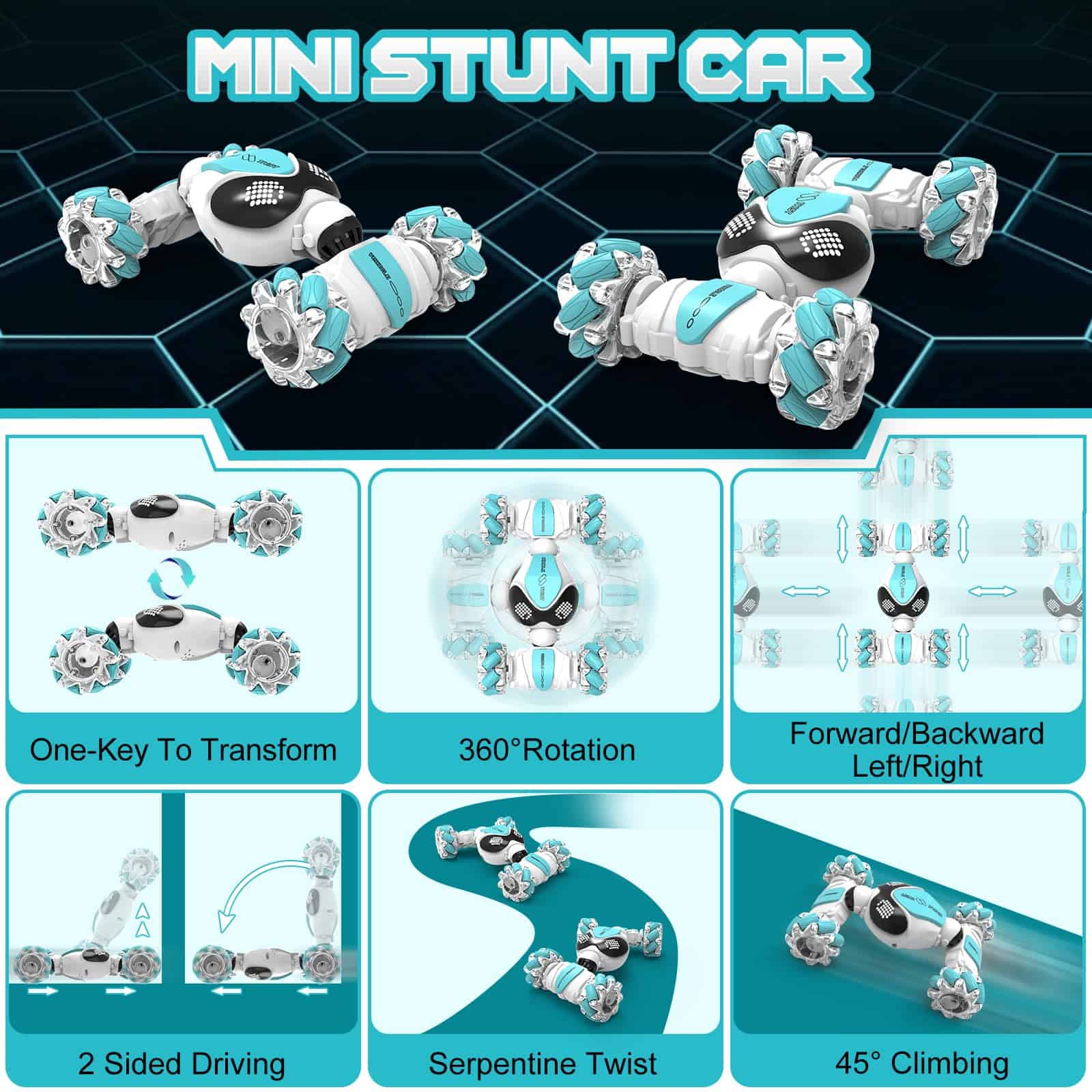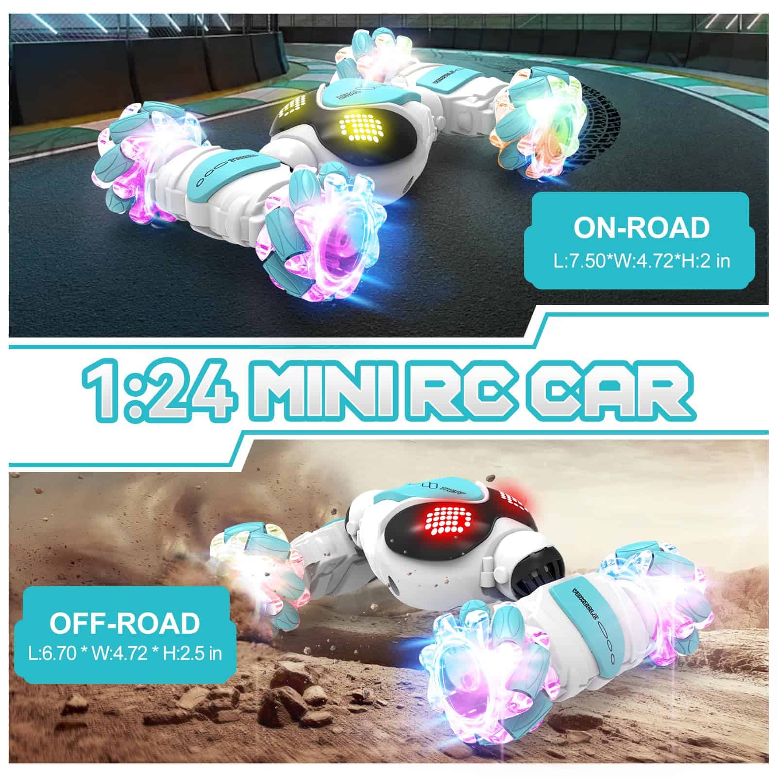 1. ¡Nueva Experiencia de Coches de Acrobacias! El mini coche de acrobacias ATHLERIA se centra en mejorar la suavidad y comodidad de la operación, con nuevas reformas realizadas en el motor de potencia del coche y en el control remoto. Con un coche de acrobacias miniatura a escala 1:24, puedes experimentar la operación más suave. Luces intermitentes y equipado con 2 lentes reemplazables, añadiendo más diversión a la transformación del coche.