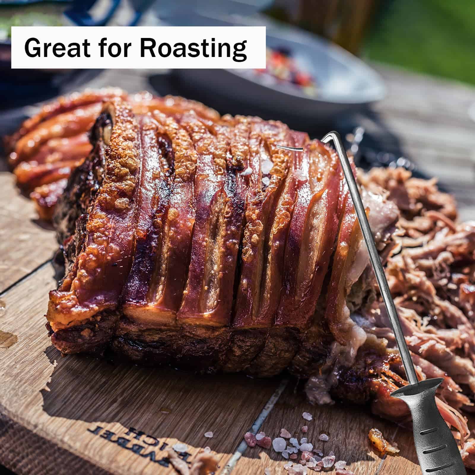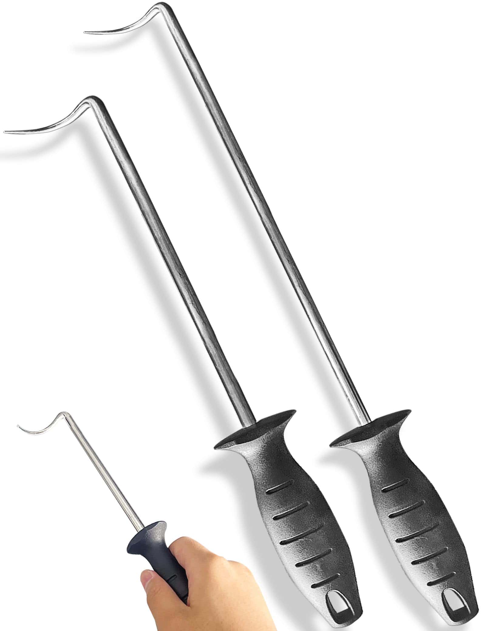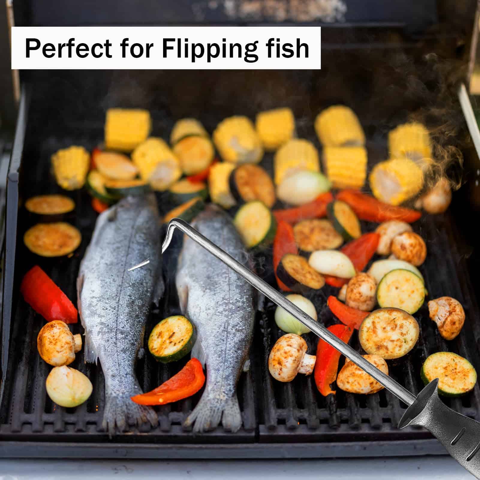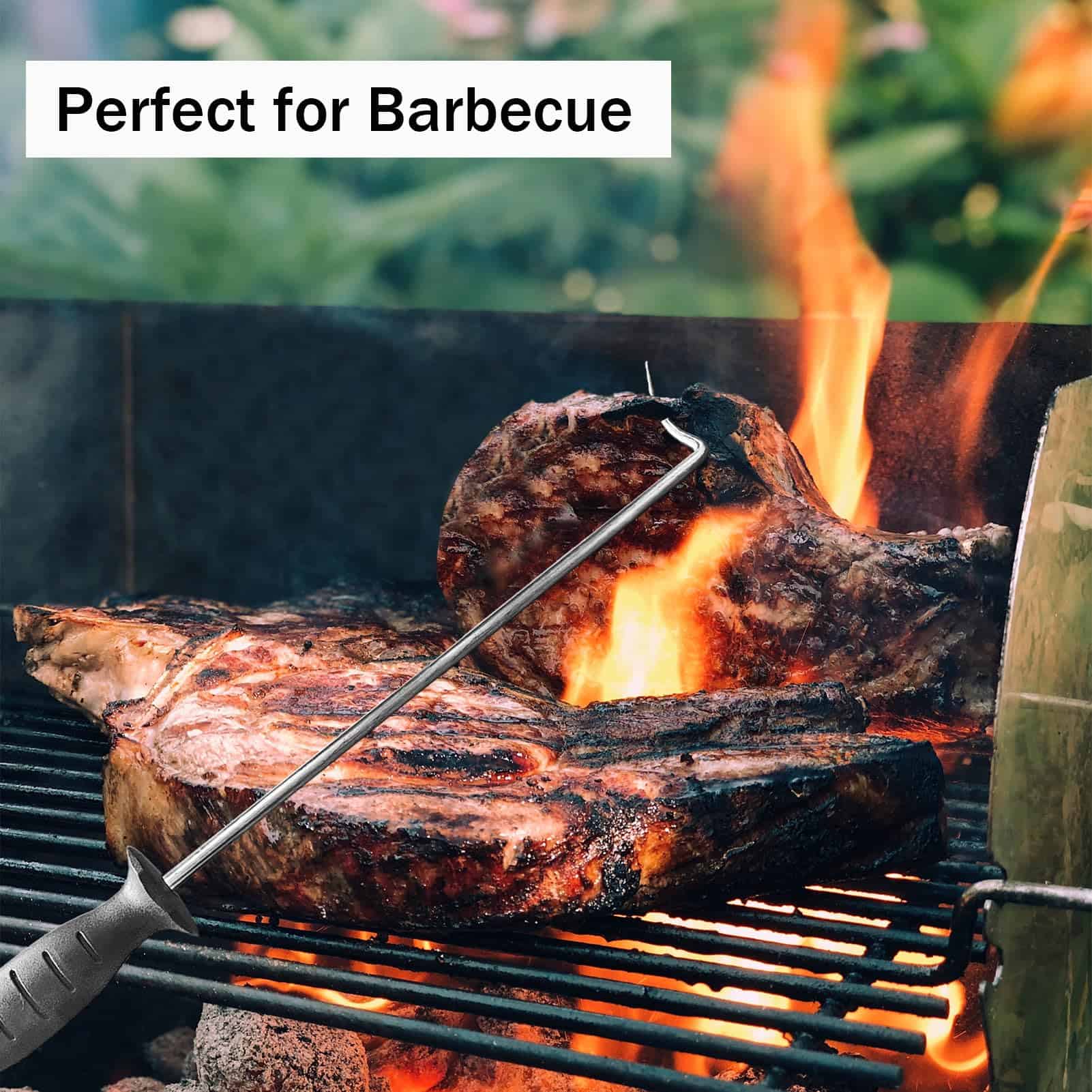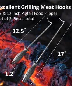 Los ganchos para voltear comida de Atigrado están hechos de acero inoxidable premium de grado alimenticio, con un diseño reutilizable y seguro para asar (Set de 2). Úsalo en lugar de pinzas, tenedores y espátulas. Voltea, gira y transporta la comida de forma rápida y segura.
