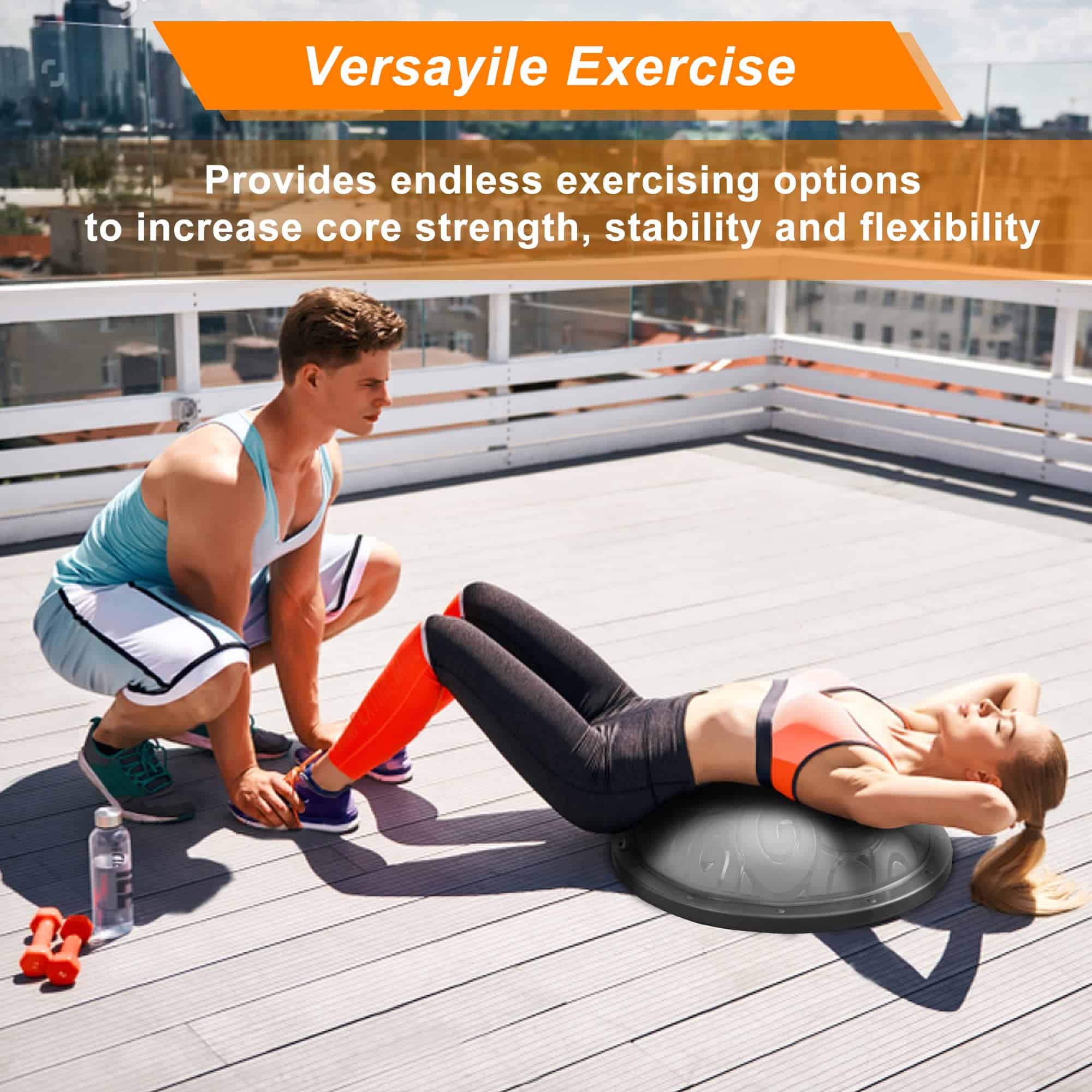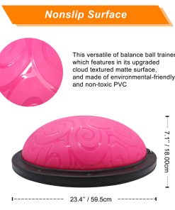 4. FÁCIL DE INSTALAR Y AHORRAR ESPACIO – El paquete incluye 1 x media bola de equilibrio (23.4» de ancho x 7.1» de alto), 2 x bandas de resistencia, 1 x bomba de aire, 1 x tapón de válvula. Se infla en un minuto y se desinfla en segundos. Es perfecto para ocasiones versátiles como el hogar, la oficina, el gimnasio.