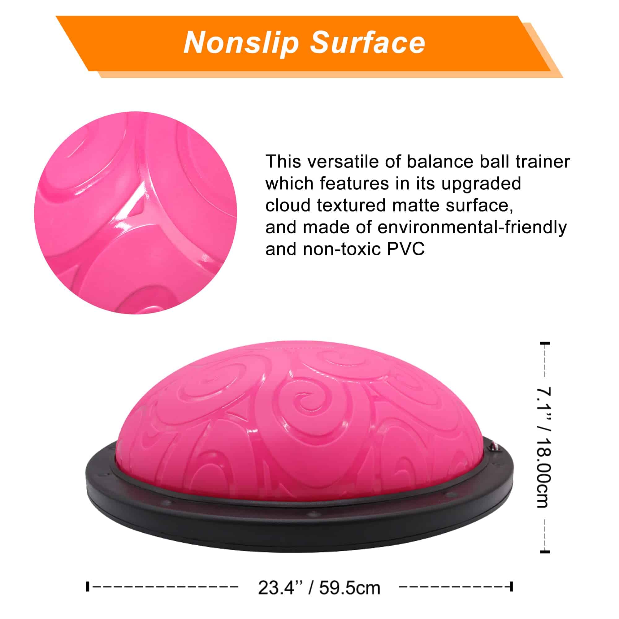 2. DISEÑO AMIGABLE PARA PRINCIPIANTES – Esta media bola está hecha de PVC ecológico y no tóxico. Equipada con una superficie mate texturizada en nube mejorada antideslizante y 6 pies de goma antideslizantes en la base que pueden demostrar tu estabilidad mientras haces ejercicio.