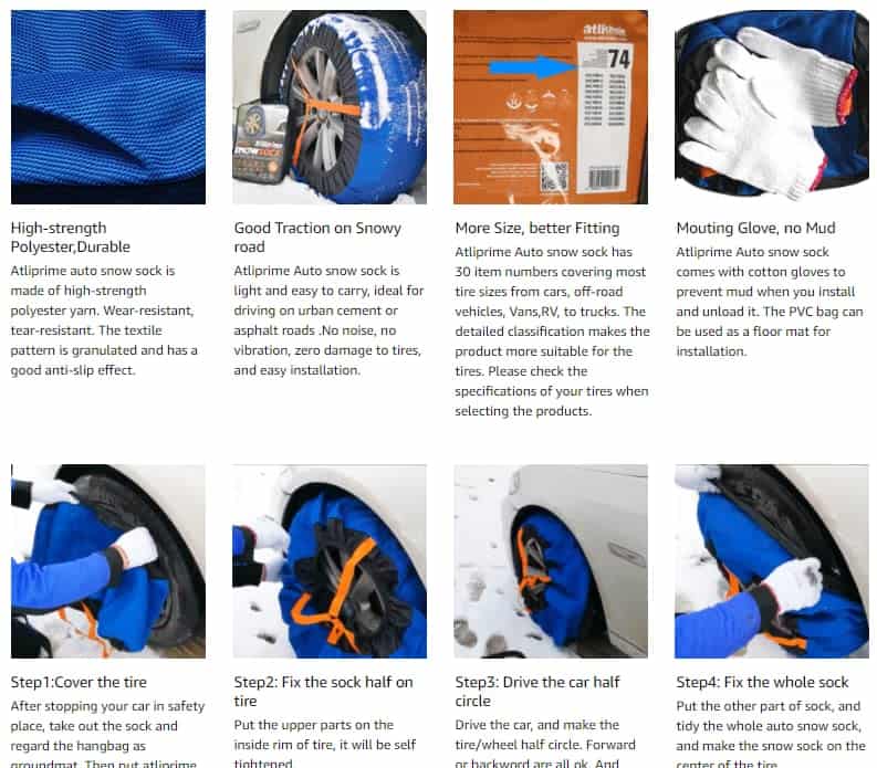 Conducir de forma segura en condiciones de nieve y hielo ya no será un problema con estas cadenas de nieve antideslizantes de atliprime. Las cadenas de nieve son fáciles de instalar, son livianas y no ocupan mucho espacio en su automóvil, por lo que siempre puede llevarlas consigo para futuros usos. Son reutilizables, lo que las convierte en una excelente inversión. Las cadenas de nieve son una solución sencilla para un problema difícil, ya que la tela de las cadenas se adhiere a la nieve y al hielo para garantizar un agarre máximo. El paquete incluye un par de cadenas de nieve en una bolsa de almacenamiento y un par de guantes para proteger sus manos durante la instalación en condiciones húmedas y sucias. Estas cadenas de nieve son adecuadas para una variedad de tamaños de neumáticos de autos de pasajeros, por lo que solo necesita verificar el tamaño de su neumático antes de comprar para asegurarse de obtener el número de stock adecuado.