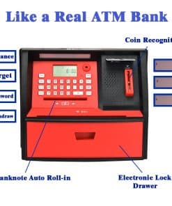 Además de ser una alcancía, este dispositivo multifuncional también es un reloj y una calculadora, brindando una variedad de utilidades a los niños. Con la ATMBnk, los padres pueden enseñar a sus hijos sobre el valor del dinero de una manera interactiva y práctica, ayudándolos a desarrollar habilidades financieras que durarán toda la vida.