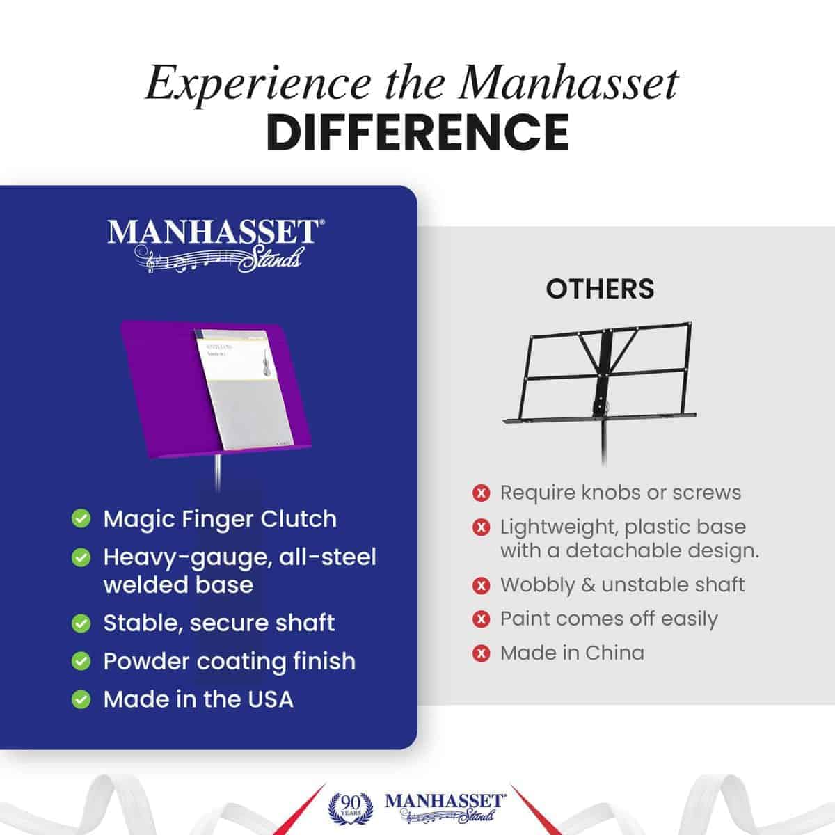 Manhasset tiene una reputación de larga data por crear los atriles de música más duraderos y resistentes. Nuestros resistentes atriles de aluminio son ligeros pero duraderos para resistir el desgaste que conlleva ser músico. Todos los atriles de música de Manhasset están recubiertos de polvo, sin reflejos y resistentes a los arañazos para garantizar un rendimiento óptimo. Nuestros atriles proporcionan estabilidad sin ocupar espacio valioso en el escenario. El diseño elegante de los atriles facilita su almacenamiento y transporte, y se ve elegante y atemporal en el escenario. Los productos Manhasset están construidos para durar y diseñados pensando en los músicos. Con un atril de música Manhasset, puedes confiar en la calidad. Los atriles Symphony de Manhasset vienen en una variedad de colores vibrantes. Los atriles de música cuentan con el Magic Finger Clutch famoso de los atriles Manhasset. Ajusta la altura eficazmente con una mano. El atril cuenta con la estabilidad y el soporte sinónimos de los atriles Manhasset. Los atriles de colores brillantes son una excelente opción para músicos jóvenes o músicos que desean hacer una declaración con el color.