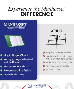 5. Todos los componentes de los atriles de música Manhasset están disponibles y se pueden adquirir por separado; esto incluye todos los modelos de mesas, ejes, bases y todas las piezas de hardware y sujetadores.