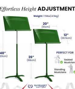 1. El atril de música más duradero y resistente fabricado; robustas mesas de aluminio, ligeras y estriadas para mayor resistencia; acabado en negro texturizado sin reflejos, resistente a los arañazos y las astillas.