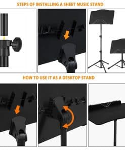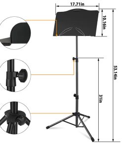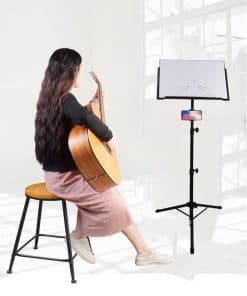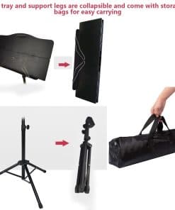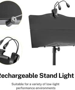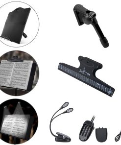 Atril plegable con soporte para teléfono incorporado, luz LED y una práctica bolsa de almacenamiento. Este atril portátil ofrece a los músicos una solución completa para ensayos y actuaciones sobre la marcha. El diseño plegable garantiza un transporte sencillo, mientras que la abrazadera para teléfono integrada facilita el acceso a partituras digitales. La luz LED ajustable mejora la visibilidad en cualquier entorno. Además, la bolsa de almacenamiento incluida añade practicidad, manteniendo tu atril protegido y organizado. Eleva tu experiencia musical con este atril plegable todo en uno, que combina portabilidad, tecnología y conveniencia para prácticas y actuaciones sin problemas.