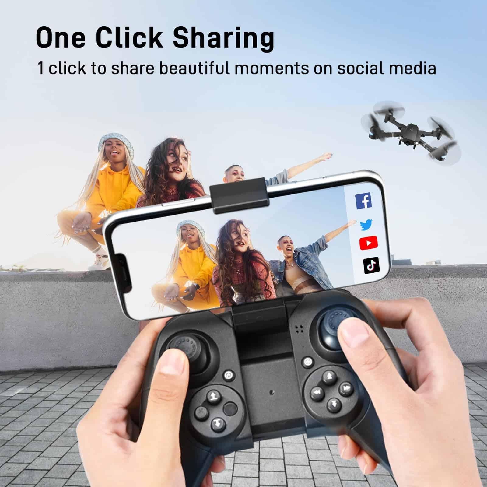 El drone cuadricóptero cuenta con control por APP, lo que te permite conectar tu teléfono o iPad y disfrutar de una vista panorámica en tiempo real del paisaje a 59-89 metros de distancia. Además, puedes utilizar funciones como dibujar una ruta en la aplicación, hablar para controlar la dirección de vuelo o hacer gestos para que el drone tome fotos automáticamente.