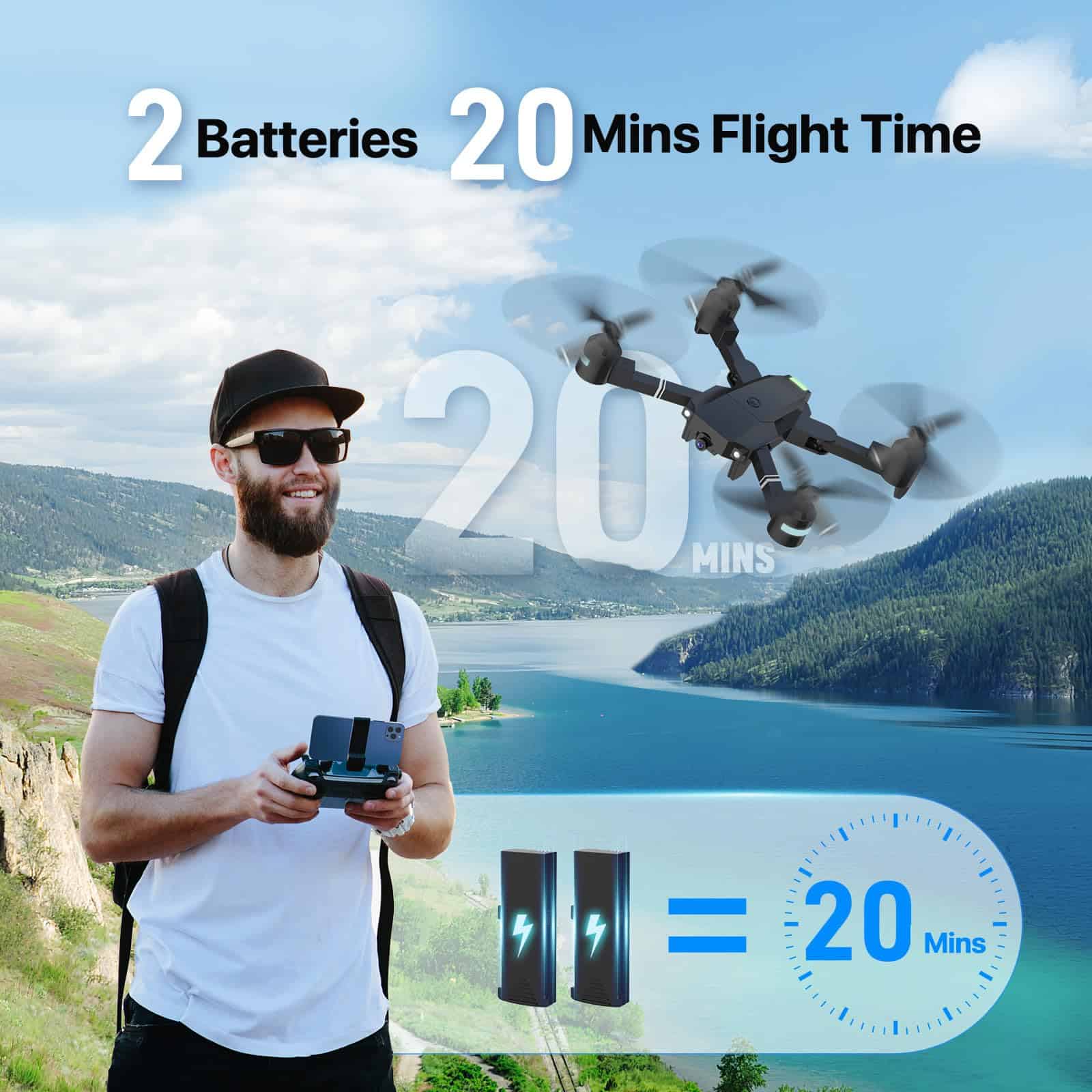 Con una duración de vuelo de hasta 20 minutos y el uso de 2 baterías recargables, este drone es perfecto para largas sesiones de vuelo. Además, su diseño de parada de emergencia garantiza una aterrizaje seguro en caso de emergencia.