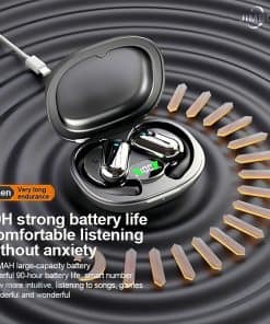 Los Audífonos de Oreja Abierta JIMBOBO cuentan con un innovador diseño de oreja abierta, permitiéndote disfrutar de tu música favorita mientras te mantienes totalmente consciente de tu entorno. La tecnología de conducción de aire asegura un sonido externo claro, lo que hace que estos auriculares Bluetooth 5.4 Inalámbricos sean perfectos para actividades al aire libre como correr, hacer ejercicio o conducir sin comprometer la seguridad. Equipados con la última tecnología Bluetooth 5.4, estos auriculares deportivos inalámbricos ofrecen una conexión transparente y estable. Disfruta de un bajo consumo de energía y una experiencia de audio sin retrasos, ya sea en el gimnasio o corriendo al aire libre, haciendo que cada batido resuene con claridad. Disfruta de hasta 50 horas de reproducción con una sola carga con nuestros Audífonos de Oreja Abierta. El estuche de carga incluido cuenta con una pantalla LED digital que indica intuitivamente la vida de la batería, para que siempre estés informado y listo para seguir con la música sin interrupciones. Con micrófonos dobles avanzados incorporados, los Auriculares Bluetooth JIMBOBO garantizan una calidad de sonido de alta fidelidad incluso en entornos ruidosos. Estos auriculares deportivos inalámbricos son compatibles con todos los teléfonos inteligentes y tabletas, conectándose sin esfuerzo en diferentes sistemas operativos para tu comodidad. Con un peso de solo 0.26 onzas, estos Auriculares de Conducción de Aire proporcionan un ajuste seguro y cómodo durante cualquier actividad. Diseñados con flexibilidad y estabilidad en mente, son perfectos para correr, andar en bicicleta o hacer ejercicio, permitiéndote moverte libremente mientras disfrutas de tus canciones favoritas. Diseñados para estilos de vida activos, nuestros Auriculares de Conducción de Aire cuentan con una estructura flexible para colgar en la oreja que los asegura durante sesiones de running, ciclismo o fitness. Con un diseño ligero y un ajuste robusto, los Audífonos de Oreja Abierta JIMBOBO te permiten sumergirte en el ritmo y el movimiento, respaldados por un confiable soporte postventa para tu tranquilidad.