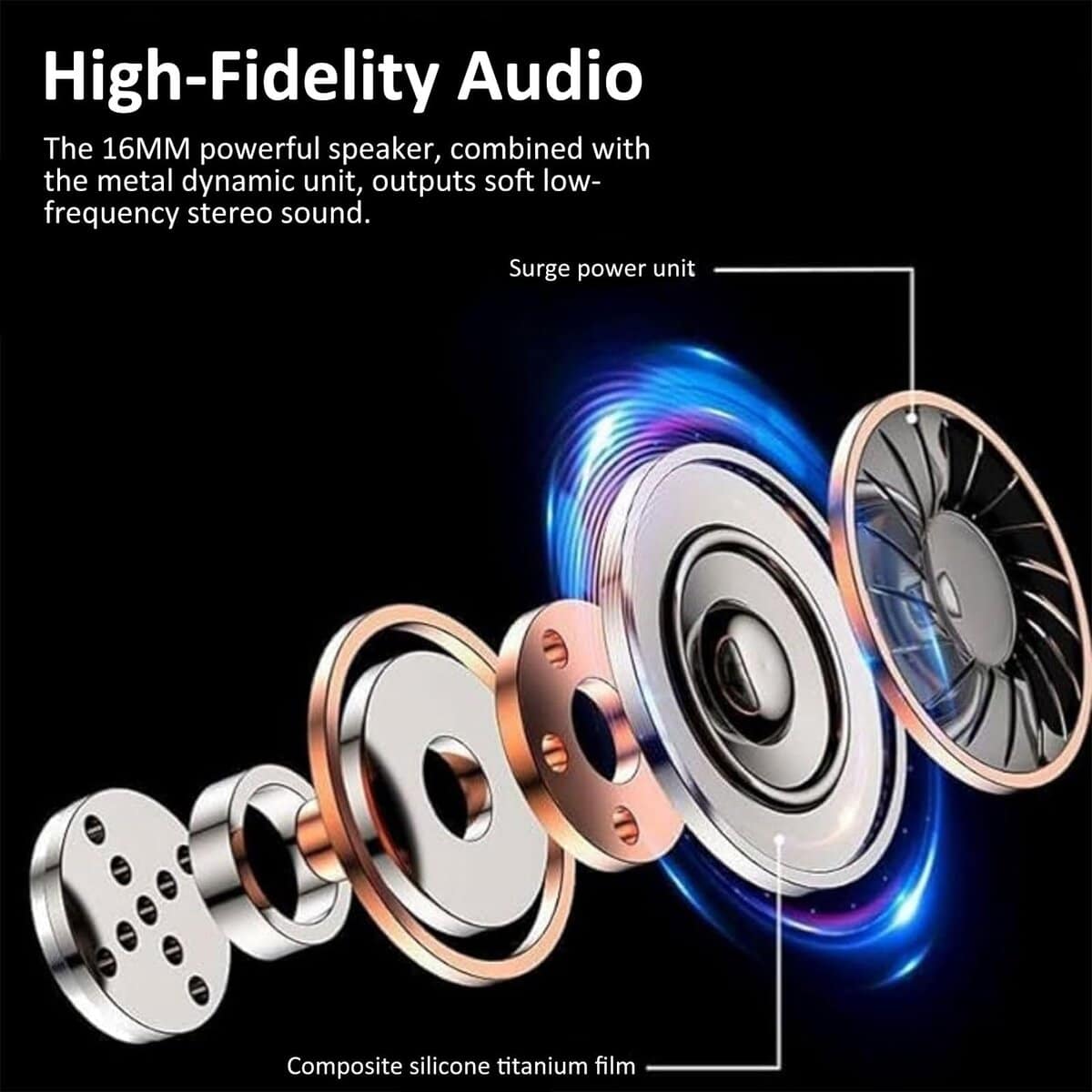 2. Experiencia de Sonido Inmersivo Sumérgete en una calidad de sonido superior con altavoces dinámicos de 16 mm incorporados en los audífonos colgantes, sumergiéndote en una calidad de sonido cristalina ya sea que estés escuchando música, viendo películas o atendiendo llamadas.
