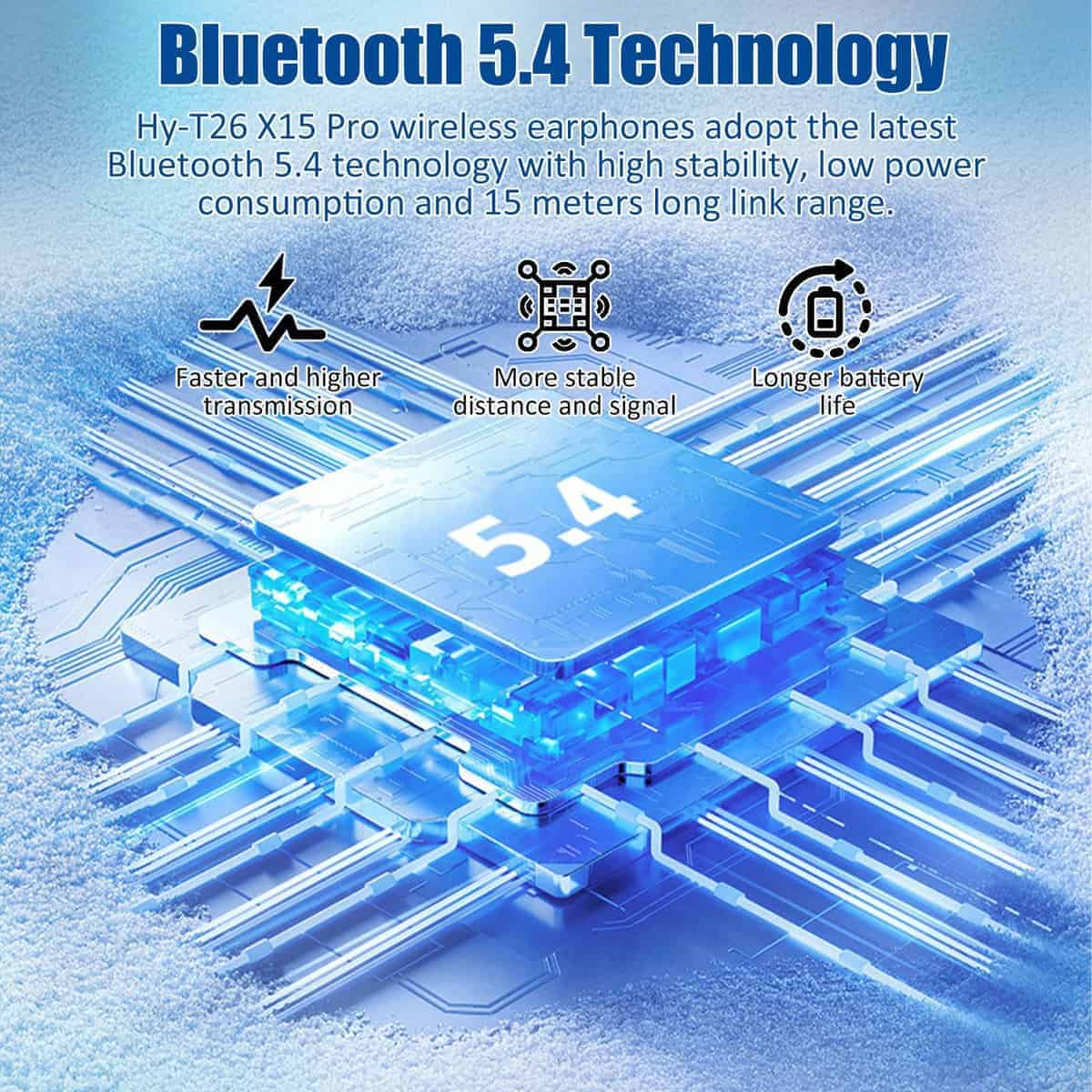5. Control Táctil Este audífono inalámbrico Bluetooth Hy-T26 X15 Pro puede reproducir/pausar fácilmente, ajustar el volumen, responder/colgar llamadas o activar la función de asistente de voz, no necesitas hacer más. Ya sea que estés corriendo, haciendo ejercicio o viajando, puedes disfrutar de música sin parar.