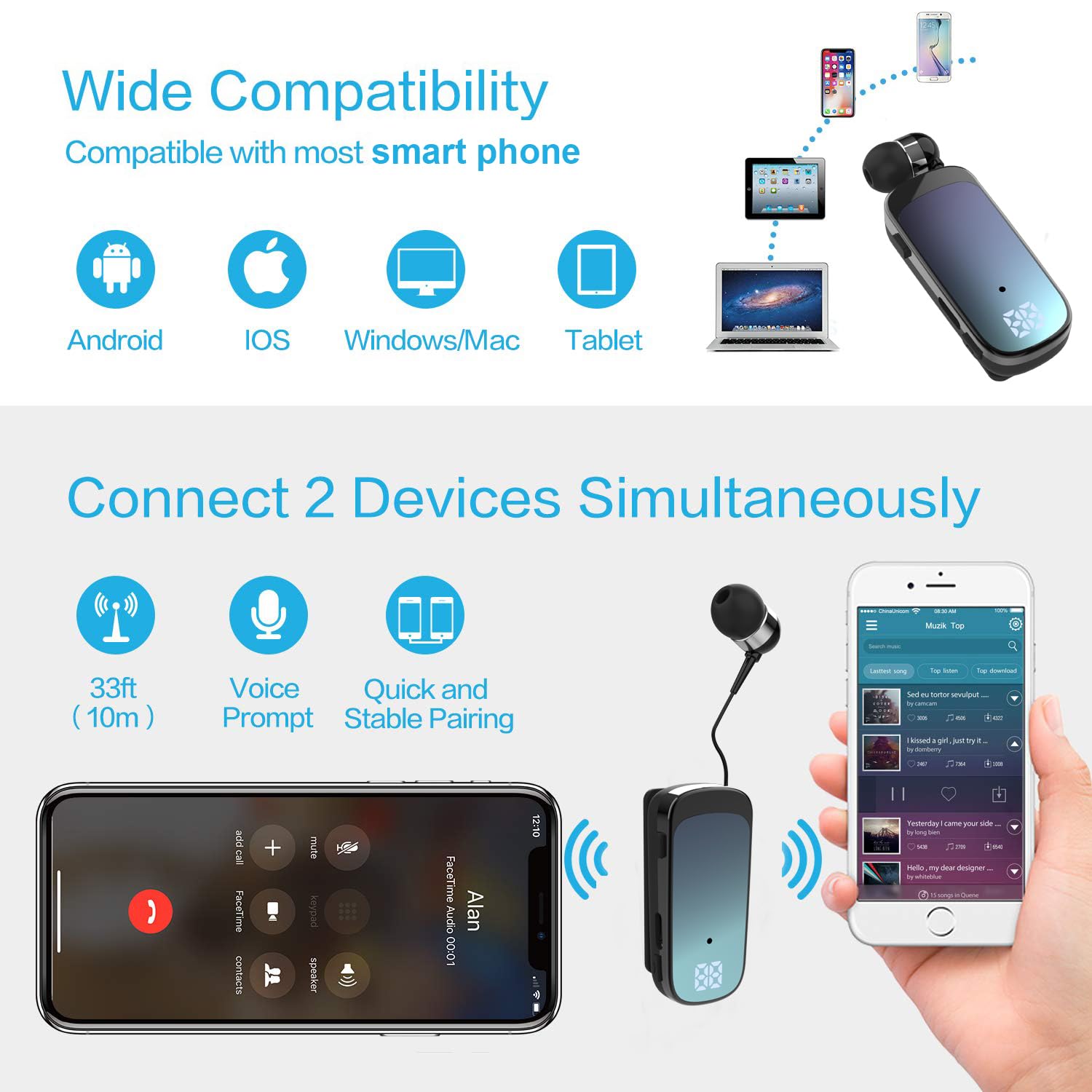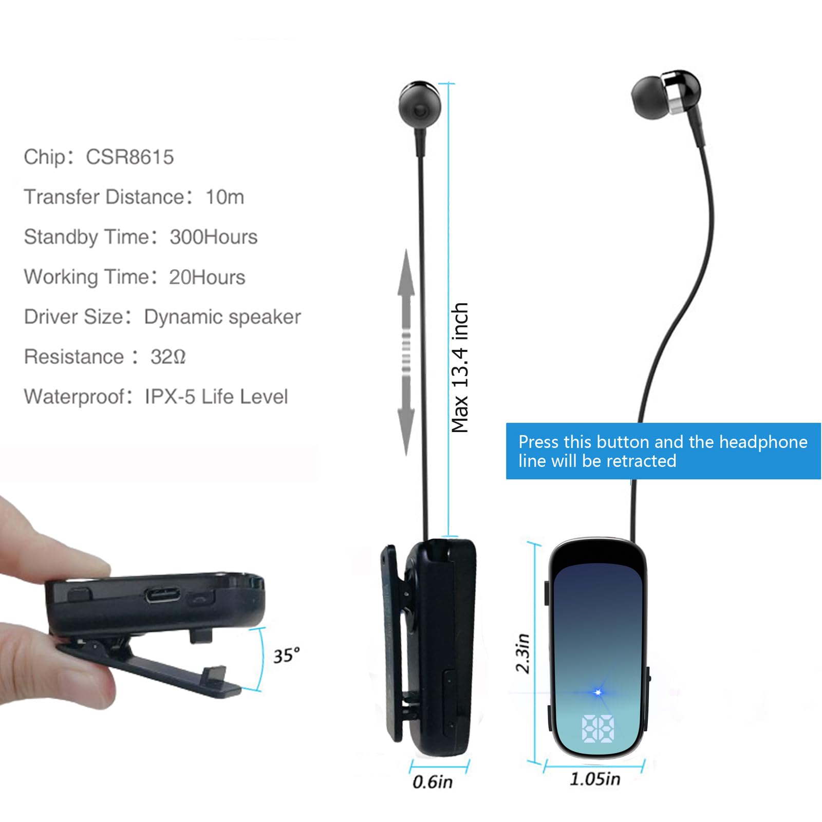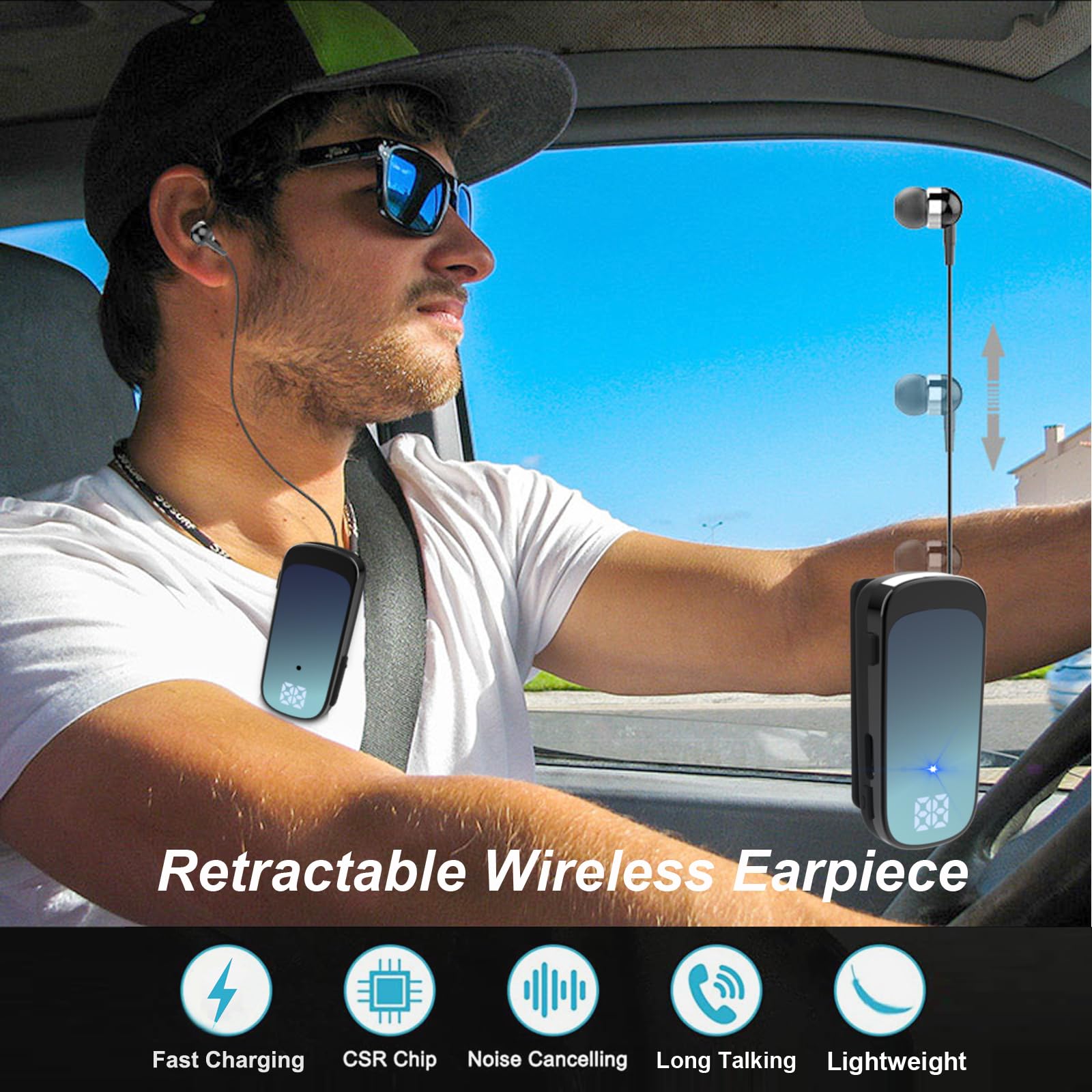 Audífono Inalámbrico Retráctil Estéreo V5.0 con Cancelación