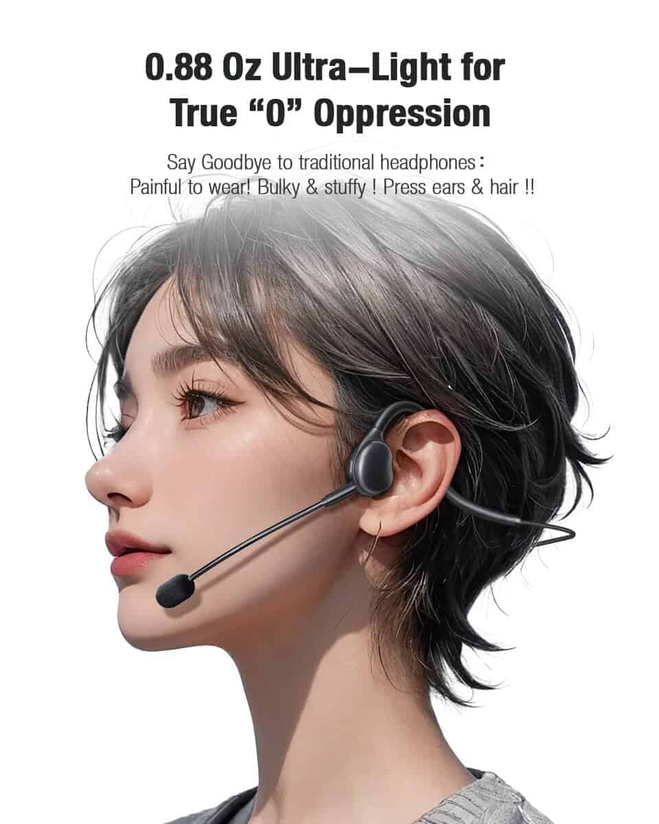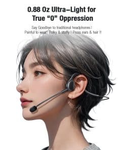 Audífono USB con Micrófono para PC-Laptop, Diseño de Auriculares de Oreja Abierta para Uso Prolongado, Audífono de Computadora con Reducción de Ruido de Llamadas Sonido Estéreo Premium para Centro de Llamadas, MS Teams, Skype, Webinars y Más (Negro) – Los audífonos USB con micrófono de QOEKUEY adoptan un diseño súper cómodo, asegurando comodidad durante todo el día. Con tecnología de conducción de aire y sonido envolvente HIFI, estos audífonos garantizan una transmisión clara y una calidad de sonido excepcional. Equipados con cancelación de ruido dual para llamadas suaves y claras, estos audífonos con micrófono son ideales para diversas situaciones de comunicación. Con un diseño ergonómico y un material ultraligero de 0.88 Oz, estos audífonos proporcionan máxima comodidad y durabilidad. Además, QOEKUEY ofrece una garantía de 12 meses para garantizar la satisfacción del cliente.