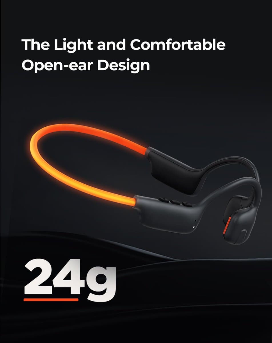 4. Comodidad ultraligera para todo el día: Siente la diferencia de nuestros audífonos abiertos de conducción de aire, diseñados con un material de silicona suave y una forma ergonómica ligera que se adapta a tu cabeza. Con solo 24 gramos, son tan cómodos que podrías olvidar que los llevas puestos, haciéndolos ideales para sesiones de escucha prolongadas o viajes diarios.
