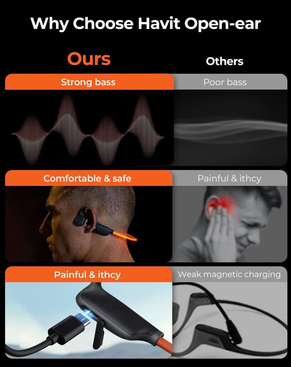 1. Tecnología de Música de Conducción de Aire de la era cruzada. Imagina correr por un sendero en el bosque, escuchando tu lista de reproducción favorita sin perder el susurro del viento o el canto de un pájaro. Nuestros audífonos abiertos te permiten disfrutar de tu música mientras sigues conectado con el mundo que te rodea, mejorando tus experiencias al aire libre y manteniéndote seguro.