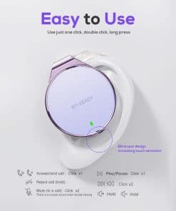 Los audífonos Bluetooth 5.4 On Ear proporcionan una experiencia auditiva de alta calidad con su audio estéreo HD y control fácil de un solo botón. Con altavoces de 28 mm para graves envolventes, estos auriculares inalámbricos en la oreja garantizan un sonido nítido y potente. Además, gracias al chip Bluetooth con función de reducción de ruido ANC + ENC, la calidad de las llamadas es excepcionalmente clara. El diseño en forma de gota de agua y el clip deportivo permiten un ajuste cómodo y seguro durante tus actividades físicas. Escucha música durante hasta 18 horas con una sola carga. El estuche de carga incluido te permitirá disfrutar de hasta 52 horas de tiempo total de escucha. Conecta tus audífonos a dos dispositivos simultáneamente para una mayor comodidad en tus actividades diarias. Los audífonos Bluetooth 5.4 On Ear vienen con un estuche de carga USB-C de gran capacidad, que te permitirá recargar tus auriculares en cualquier momento. Disfruta de la comodidad de los auriculares con gancho para la oreja y diseño de copa de esponja, que garantizan un ajuste cómodo y sin restricciones. Descubre una nueva forma de disfrutar de tu música y llamadas con estos innovadores audífonos Bluetooth.