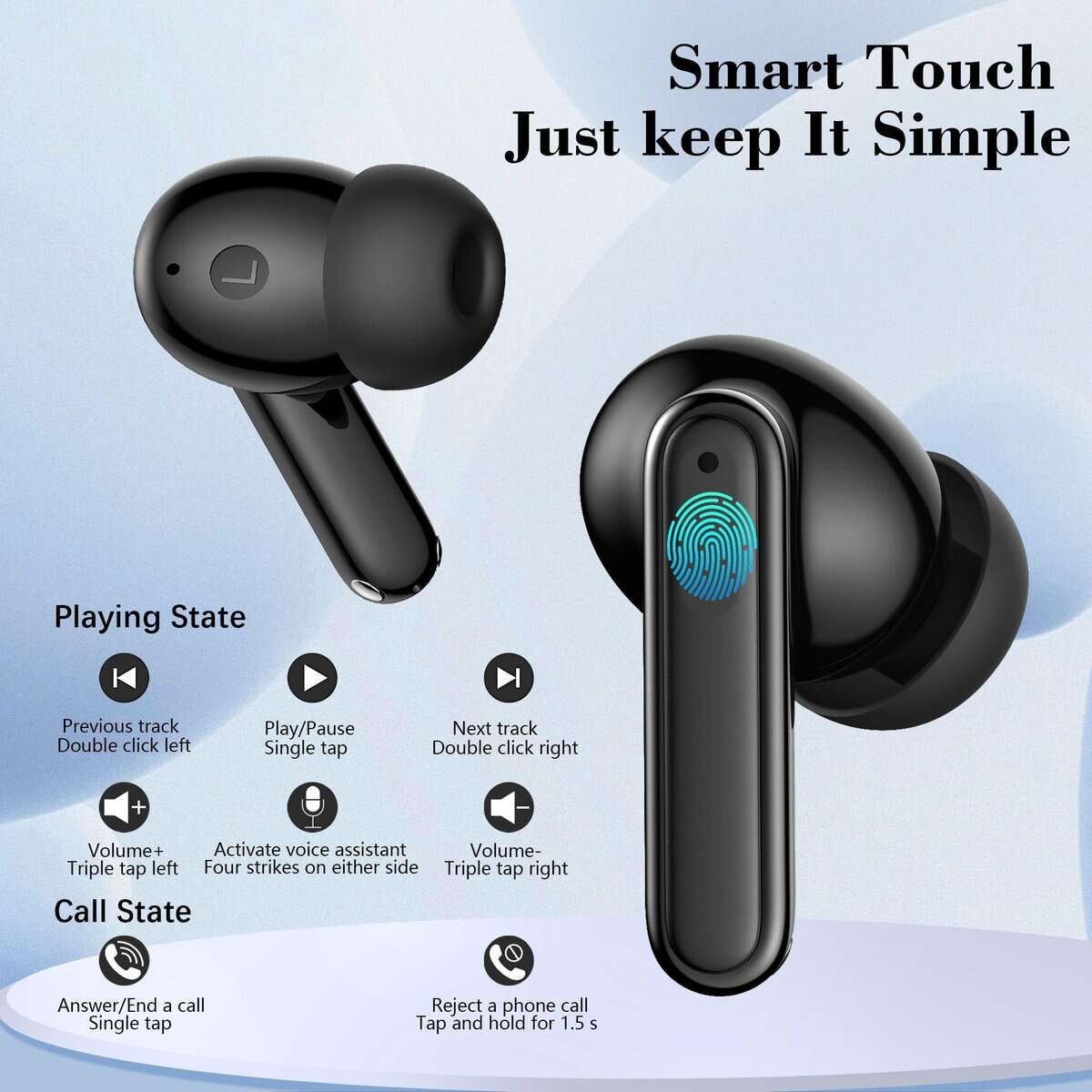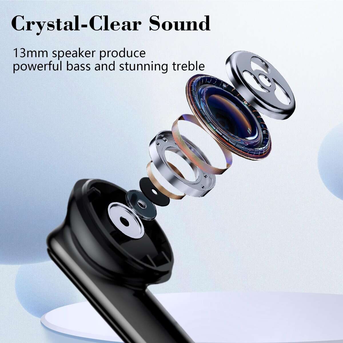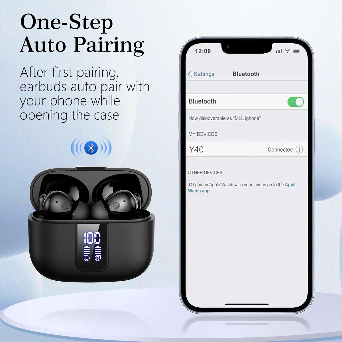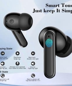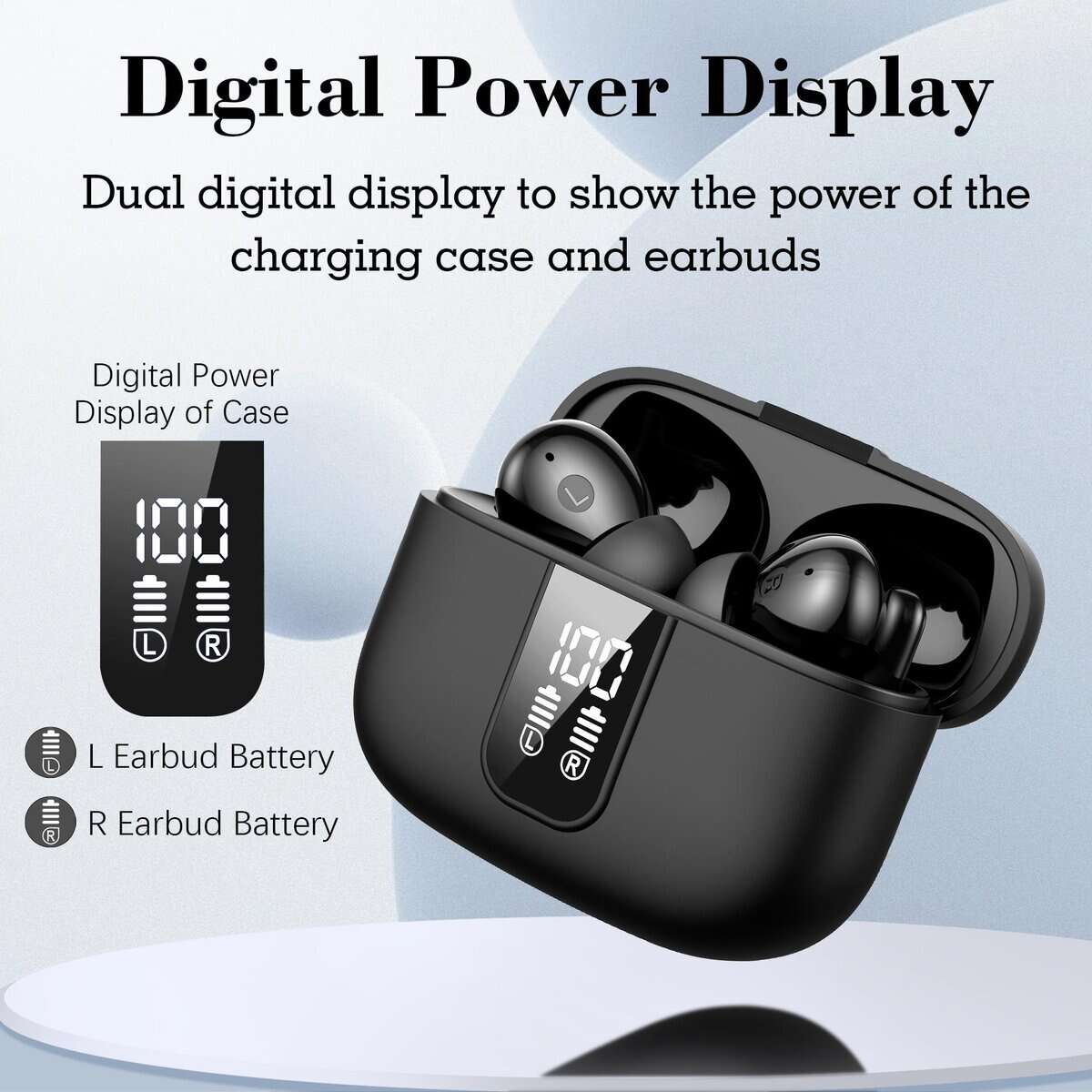 1. Mostrador LED de Batería y 60 Horas de Reproducción: Pantalla dual digital de batería LED fuera del estuche para mostrar el nivel de carga del estuche y los auriculares inalámbricos. La capacidad de la batería de 350mAh del estuche de carga puede proporcionar 5 cargas completas adicionales para ambos auriculares, cada auricular inalámbrico puede durar 6 horas en una sola carga. Por lo tanto, puede disfrutar de un tiempo de música total de 60 horas utilizando por turno.n2. Llamada Clara Superior y Sonido Estéreo Inmersivo: Estos auriculares de música inalámbricos Bluetooth con altavoces de 13mm y diafragmas compuestos de triple capa proporcionan graves potentes, agudos impresionantes y medios claros. Estos auriculares Bluetooth están diseñados para amantes del sonido y la música. Puede admitir el modo mono y el modo estéreo gemelo, puede compartir los auriculares inalámbricos Bluetooth con sus amigos y familiares. Cada auricular inalámbrico Bluetooth tiene un micrófono integrado para llamadas de iPhone. La reducción de ruido ANC+ENC puede hacer que otros escuchen su voz de manera muy clara durante las llamadas de iPhone.n3. Diseño Ergonómico y Ligero: La estructura de los auriculares inalámbricos BAFONE Y40 Bluetooth es el estudio de los canales auditivos de miles de personas antes del diseño. Viene con tres tamaños diferentes de puntas de oído, nuestros Y40 se ajustan a la mayoría de los canales auditivos de personas. Estos auriculares inalámbricos son pequeños y ligeros, el tamaño de un solo auricular es solo de 0.14 onzas, el tamaño del auricular es de 1.57 0.78 0.59 pulgadas, el tamaño del estuche de carga es de 2.56 2.16 1 pulgadas, es más conveniente de llevar.n4. Emparejamiento en un Paso y Control Táctil Fácil: Los auriculares inalámbricos Y40 Bluetooth adoptan un interruptor de sala. Después de la primera conexión, estos auriculares inalámbricos Bluetooth se conectarán con su dispositivo una vez que abra el estuche de carga, lo cual es más rápido y conveniente. Durante el uso, puede tocar cualquiera de los auriculares para controlar el teléfono, como el cambio de música, ajuste de volumen, llamadas telefónicas, asistente de voz, etc. No es necesario ajustar a través de sus teléfonos móviles.n5. Impermeable IPX5: El estuche de carga de los auriculares inalámbricos Bluetooth utiliza carga por cable USB C. Los auriculares inalámbricos Bluetooth tienen clasificación IPX5 impermeable, el revestimiento nano en la superficie de los auriculares puede evitar que el agua y el sudor penetren, lo cual se puede usar como auriculares inalámbricos deportivos. Puede escuchar música mientras corre, trabaja, lee, duerme, se reúne, etc.