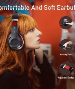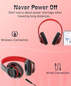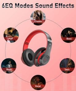 Audífonos Bluetooth Over Ear, 6S Plegables Audífonos Inalámbricos con 6 Modos de EQ, 40 Horas de Tiempo de Reproducción HiFi Estéreo Auriculares con Micrófono, Almohadillas Suaves, TF/FM para Celular/PC/Hogar (Negro y Rojo)