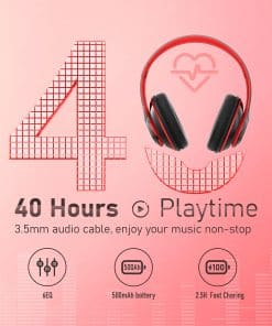 – 40 Horas de Reproducción Larga con 6 Modos de EQ: Nuestros audífonos inalámbricos tienen 6 modos de EQ con los cuales puedes cambiar libremente entre sonidos de Bajos/Jazz/Voz/Rock/Pop/Clásico, cada modo te proporciona un sonido de calidad de CD. Batería de 500mAh, 40 horas de tiempo de reproducción, Carga Rápida de 2.5 horas. Los audífonos inalámbricos vienen con un cable de audio de 3.5mm, lo que significa que puedes cambiar al modo cableado y disfrutar de tu música sin parar. Ya sea que desees audífonos inalámbricos o audífonos con cable, estos audífonos Bluetooth tienen lo que buscas.