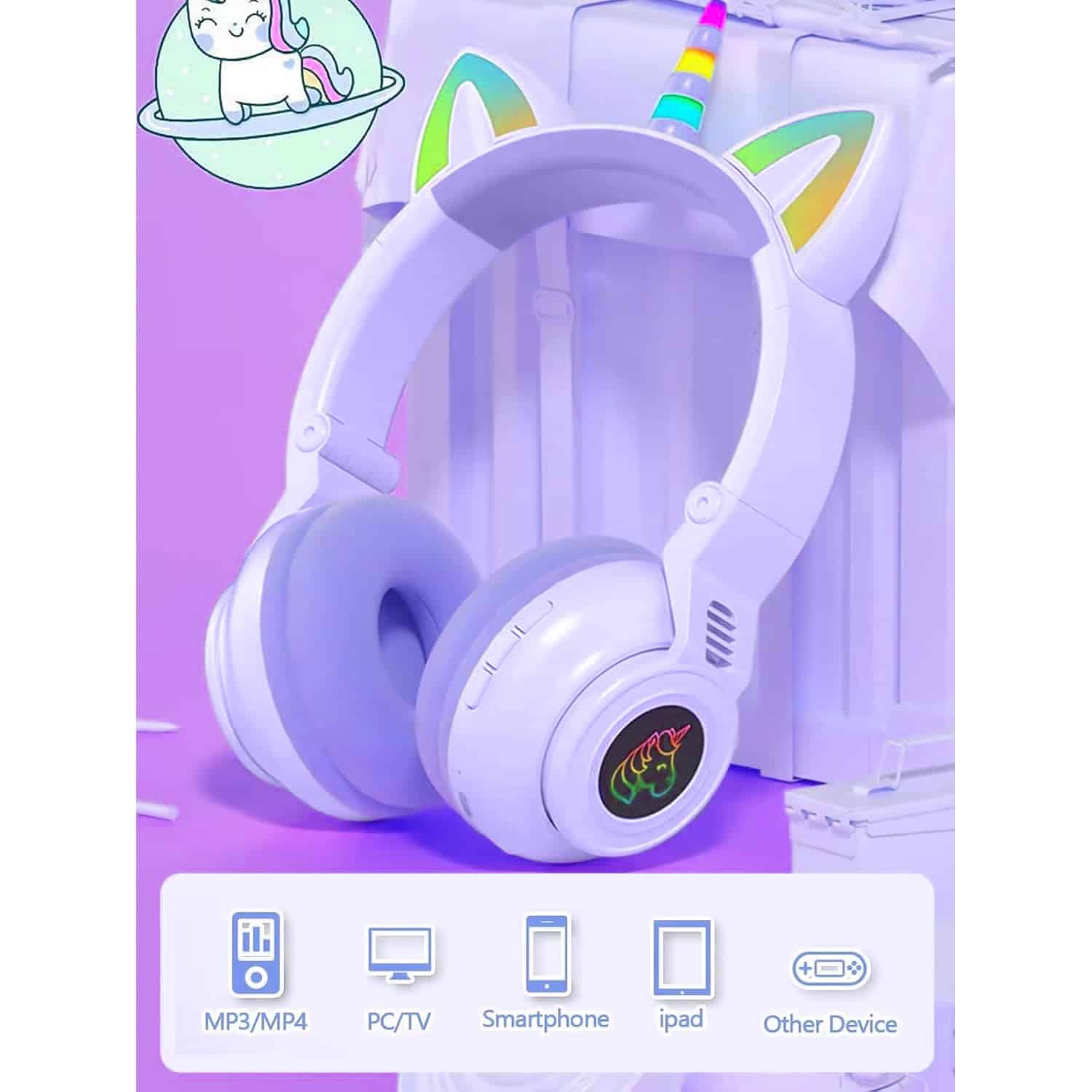 Audífonos Bluetooth para niños Unicornio, Plegables