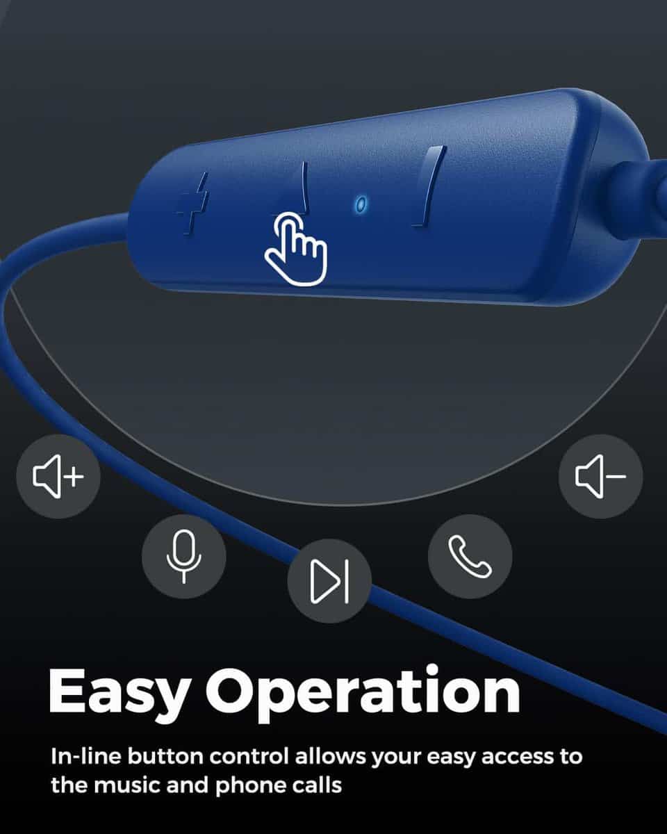 5. Control en línea. Fácil de usar – Construido con control de botón en línea, la operación fácil te permite cambiar de canciones, ajustar el volumen y contestar / colgar llamadas telefónicas de una manera muy conveniente.
