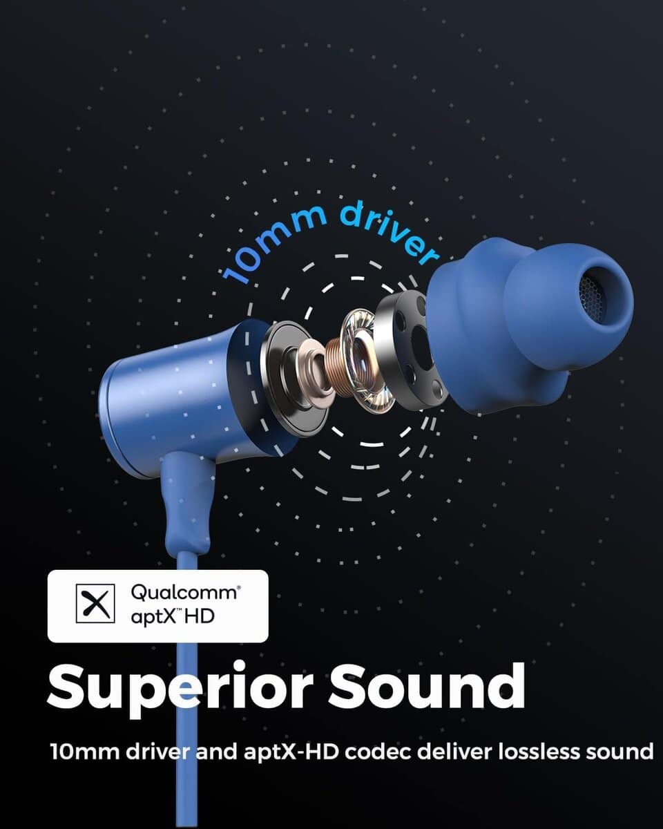1. Sonido estéreo. Bajos inmersivos – Adopta el chip Qualcomm QCC3040 de alta gama, junto con el códec avanzado aptX-HD para ofrecer un sonido estéreo superior con bajos potentes.