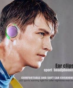 4. Auriculares con Gancho para la Oreja: Auriculares de oído abiertos. Este auricular Bluetooth deportivo adopta un estilo de uso con gancho para la oreja. Con resistencia al sudor y al agua IPX5, puede evitar efectivamente que el sudor durante el ejercicio afecte el funcionamiento de los auriculares. Por lo que no tiene que preocuparse de que el sudor diario cause daños a los auriculares.