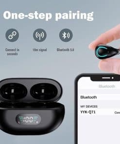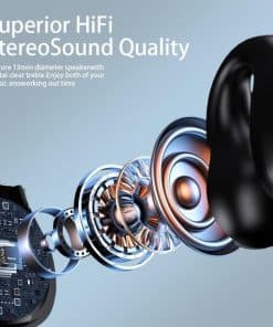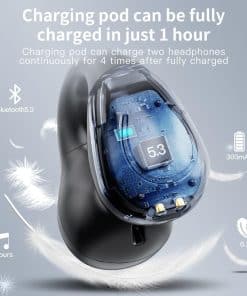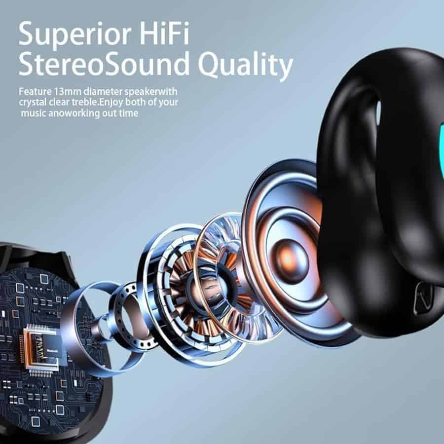 Audífonos de Conducción Ósea Bluetooth 5.3 Inalámbricos para enganchar en la oreja con Estuche de Carga de Exhibición Digital 60 Horas de Reproducción IPX7 Impermeables Auriculares Deportivos para Correr, Caminar, Ejercitar(Negro) – Auriculares de Conducción Ósea con diseño recién desarrollado para engancharlos en la oreja con apariencia nueva y moderna y de oído abierto para asegurarte de que puedas percibir el sonido del entorno externo cuando disfrutes de tu música, película, deporte. Te ayuda a mejorar en la seguridad personal y poder responder educadamente a los demás. – Bluetooth 5.3 de baja latencia: A diferencia de versiones anteriores, el chip 5.3 proporciona una señal mucho más fuerte y estable, sin preocupaciones por interrupciones en llamadas. Disfruta de videos sin retrasos, sumergiéndote más en las películas. – Ligeros y Ajuste Estable: Los auriculares deportivos TANFESO Q71 pesan 0.18 OZ, están hechos de material suave de silicona premium, manteniendo la comodidad durante la actividad física. El diseño de oído abierto garantiza una experiencia sin dolor y daño, ya que los auriculares no necesitan ser insertados en el canal auditivo. Con un diseño ergonómico y aerodinámico, los auriculares Bluetooth deportivos permanecen en su lugar al correr, bailar o usar gafas. – Estuche de Carga Inalámbrica con Exhibición de LED: El estuche de carga de 300mAh permite cargar completamente los auriculares inal&a