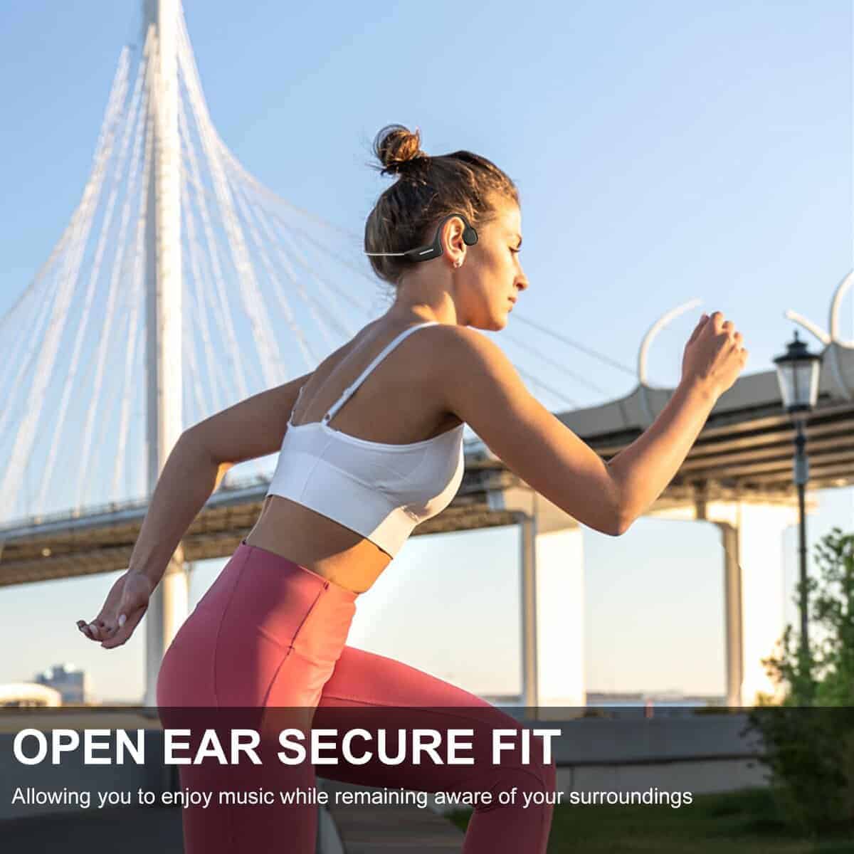 4. Bluetoeth 5.3 y conexión multi-dispositivo Los auriculares inalámbricos de conducción ósea cuentan con el último Bluetoeth 5.3 – Rango de conexión de hasta 33 pies. Garantizando velocidades de conexión más rápidas y señales más estables. Proporcionando música ininterrumpida y llamadas claras durante el trabajo o los entrenamientos. Los auriculares Bluetooth admiten la conectividad multi-dispositivo, permitiendo enlazar dos dispositivos Bluetooth simultáneamente sin preocuparte por desconexiones. Cambia fácilmente en cualquier momento para una conexión fluida y una mayor eficiencia en el trabajo.