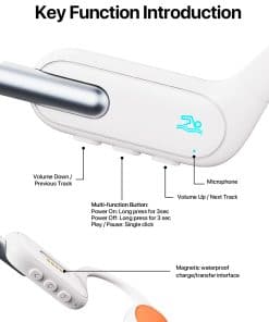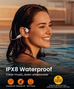 Los audífonos de conducción ósea IPX8 a prueba de agua son la opción perfecta para los entusiastas de los deportes acuáticos y al aire libre. Con una clasificación de impermeabilidad IPX8, estos audífonos pueden sumergirse hasta 2 metros de profundidad sin ningún problema, lo que los hace ideales para usar en la piscina, en la ducha o mientras corres bajo la lluvia. Además, su diseño de oído abierto y su transmisión de audio a través del cráneo ofrecen una experiencia auditiva única y cómoda, reduciendo la fatiga y la tensión en los oídos. Con 32GB de memoria MP3 integrada, estos audífonos tienen capacidad para almacenar una gran cantidad de música, lo que te permite disfrutar de tus canciones favoritas incluso cuando estás lejos de tu teléfono. La conectividad Bluetooth 5.3 garantiza una conexión estable y sin cortes, permitiéndote disfrutar de hasta 8 horas de música y llamadas sin interrupciones. Si buscas unos audífonos versátiles y de alta calidad para tus actividades acuáticas y al aire libre, los audífonos de conducción ósea IPX8 a prueba de agua son la elección ideal.