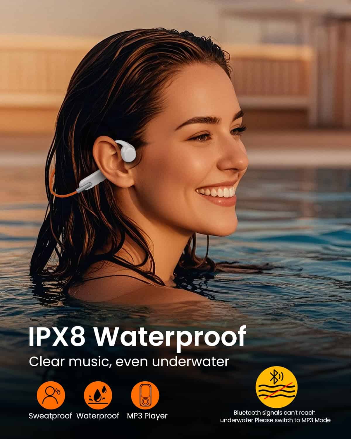 Audífonos de conducción ósea IPX8 a prueba de agua