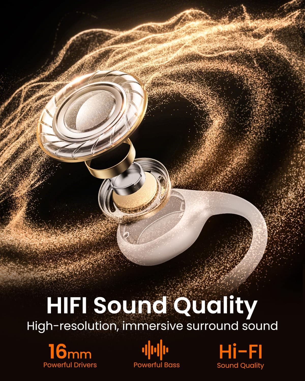 2. Diseño de oído abierto: Los audífonos de conducción ósea cuentan con un diseño de oído abierto que transmite audio de alta calidad a través del cráneo, reduciendo así la carga en los oídos. El auricular inalámbrico Bluetooth es más ligero y cómodo de usar, lo que te brinda una experiencia cómoda incluso cuando lo usas todo el día.