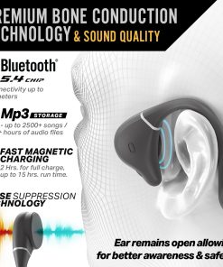 3. Mantente conectado en todo momento: Con los audífonos de oído abierto Bluetooth 5.4, no esperes menos que música y llamadas constantes hasta 10 metros, todo mientras preservas la vida útil de la batería. La conectividad multi-dispositivo permite conexiones simultáneas a varios dispositivos para una flexibilidad final, controla sin esfuerzo tu audio, realiza llamadas manos libres y accede a los Asistentes de Voz. El reproductor de MP3 lleva más de 2500 canciones, perfecto para entrenamientos sin teléfono. Almacena hasta 145 horas de música, libros o podcasts.