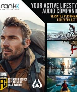 5. Construcción Premium Ligera: Los audífonos de conducción ósea Bluetooth Crank cuentan con un marco de aleación de titanio recubierto con un acabado de silicona Premium, que los hace excepcionalmente fuertes y resistentes. A pesar de su impresionante resistencia, el titanio es increíblemente ligero. El acabado de silicona ofrece un tacto suave en los pómulos, minimizando la presión, lo que se traduce en una comodidad significativamente mejorada durante el uso prolongado e higiene, especialmente durante los entrenamientos o en condiciones húmedas.