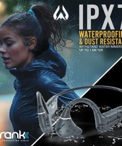 2. Resistente al agua IPX7: Ideal para todos los entusiastas del deporte, los audífonos de conducción ósea Wildhorn Crank con micrófono resisten la lluvia intensa y el sudor, permitiéndote enfrentar cualquier entorno. Pueden sumergirse en agua hasta 1 metro durante 30 minutos.
