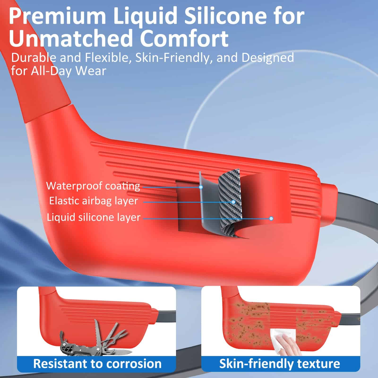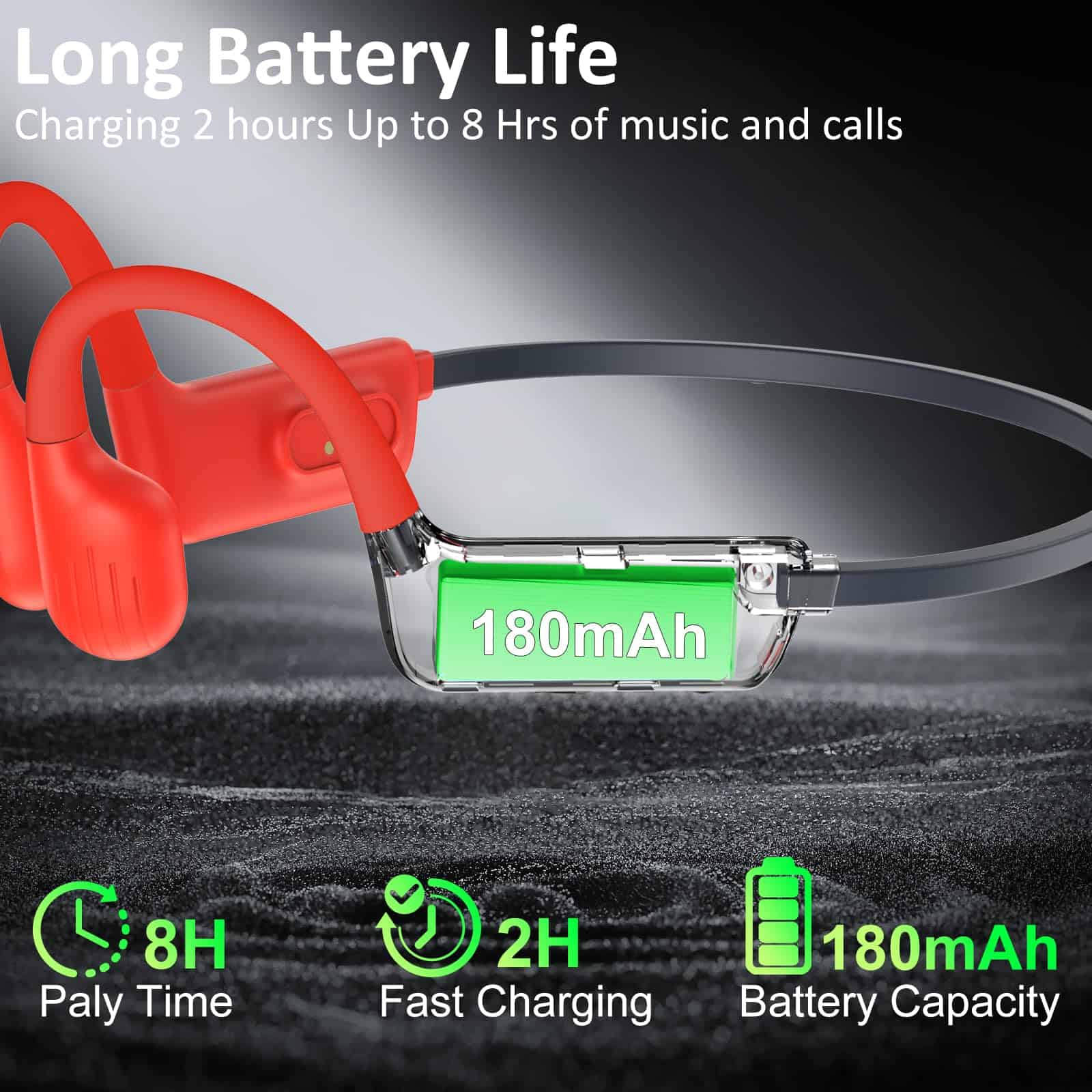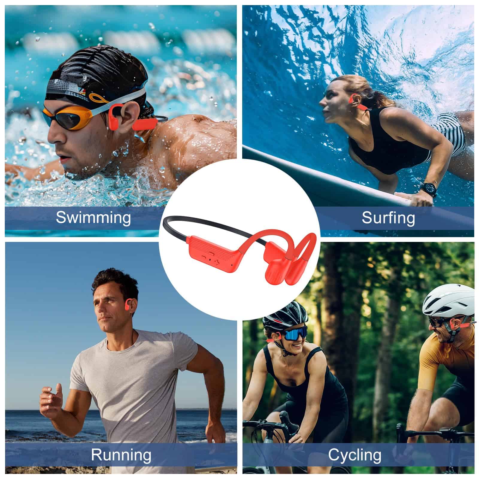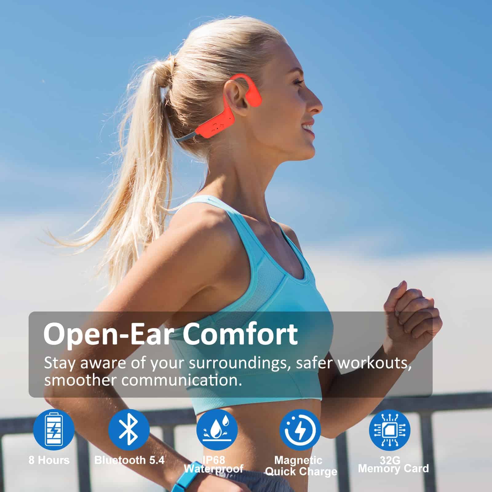 1. Diseño cómodo de conducción ósea Experimenta la máxima comodidad con el diseño de audífonos de conducción ósea. Con un peso de solo 24,3 g, estos auriculares de natación cuentan con un diseño de conducción ósea que mantiene tus oídos libres y cómodos, incluso durante un uso prolongado. Ya sea que estés nadando, corriendo o relajándote, el ajuste ergonómico garantiza una experiencia segura y sin dolor, haciéndolos la opción ideal para auriculares subacuáticos para nadar. 2. Resistente al agua IP68 Los auriculares subacuáticos para nadar cuentan con una clasificación de resistencia al agua IP68, lo que los hace resistentes al agua y al sudor. Ya sea que estés nadando hasta 2 metros de profundidad o sudando en intensos entrenamientos, estos auriculares impermeables para nadar están diseñados para resistirlo todo, asegurando durabilidad y confiabilidad en cualquier entorno. 3. Bluetooth 5.4 y memoria incorporada de 32GB Con Bluetooth 5.4, los audífonos de natación ofrecen una transmisión de alta velocidad y una conexión estable de hasta 10 metros. Con 32GB de memoria incorporada, almacena hasta 8,000 canciones y disfruta de la música sin tu teléfono. Perfecto para entornos subacuáticos donde las señales Bluetooth pueden no llegar, ideal para nadar, correr o actividades al aire libre. 4. Vida útil de la batería ultra larga Disfruta de música ininterrumpida con auriculares de natación que ofrecen un impresionante tiempo de espera de 15 días y 8 horas de reproducción continua. Perfectos para largas sesiones de natación, entrenamientos o desplazamientos diarios, estos auriculares impermeables para nadar están diseñados para seguir el ritmo de tu estilo de vida activo. La batería de 180mAh garantiza un rendimiento duradero, mientras que la función de carga rápida de 2 horas te pone de vuelta en acción. 5. Sonido estéreo HiFi Sumérgete en un sonido estéreo HiFi cristalino con nuestros auriculares de natación. Diseñados para amantes de la música, estos auriculares impermeables para nadar ofrecen un audio equilibrado y rico con graves profundos y agudos nítidos. Ya sea que estés nadando o relajándote, la tecnología acústica avanzada garantiza una experiencia auditiva excepcional. Perfectos para auriculares subacuáticos para nadar, la calidad del sonido permanece inalterada, incluso en entornos desafiantes.