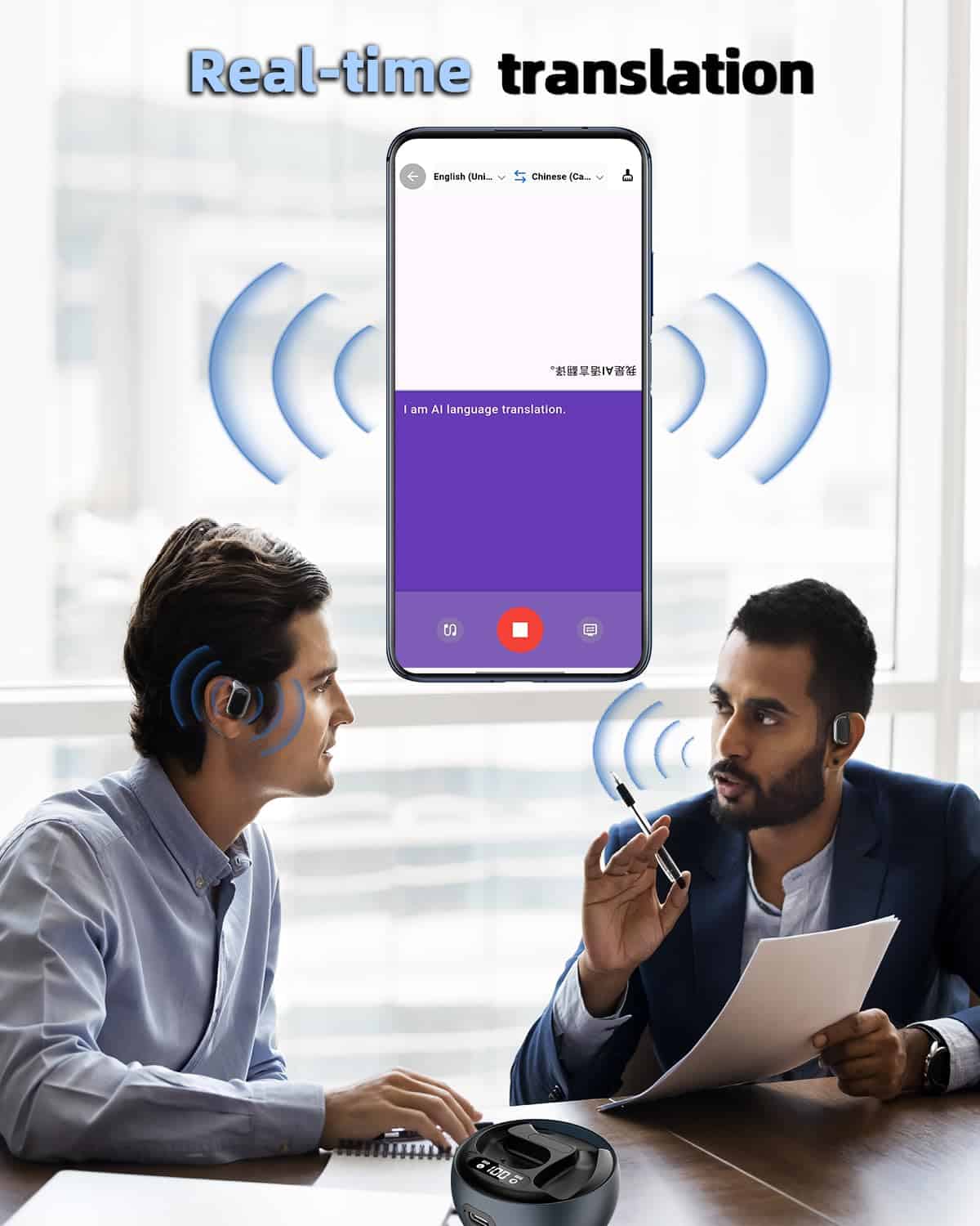 3. Suscripción gratuita: Los audífonos traductores vienen con una aplicación dedicada de servicios de traducción en línea gratuitos. Listos para usar sin necesidad de compras adicionales, estos audífonos traductores en tiempo real ofrecen capacidades de traducción sin complicaciones directamente de la caja.
