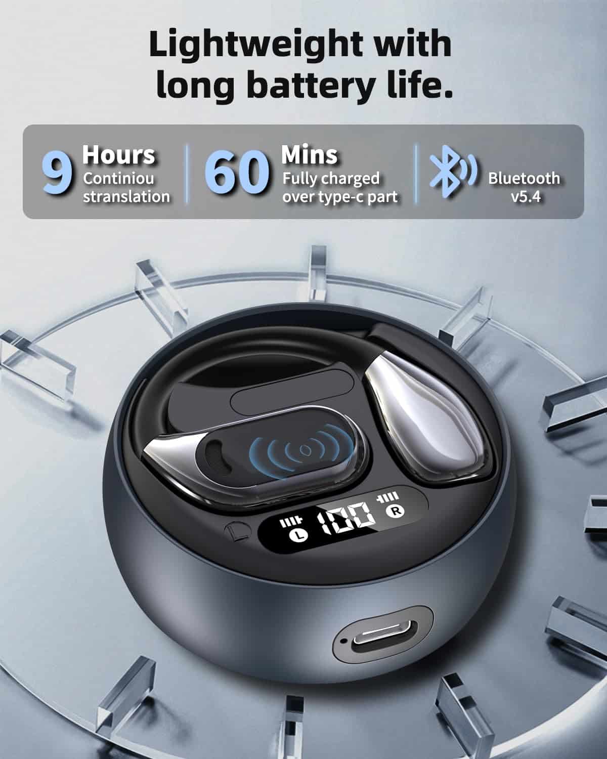 5. Diseño moderno y ergonómico: Combinando estilo y practicidad, estos audífonos traductores instantáneos. El diseño ergonómico asegura un ajuste seguro y cómodo, permitiendo un uso prolongado sin molestias, al mismo tiempo que son ligeros y portátiles.