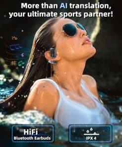 1. Dominio mejorado de múltiples idiomas: Estos audífonos de traducción permiten una comunicación sin problemas en todo el mundo con traducción bidireccional en tiempo real para 144 idiomas. Impulsados por el aprendizaje automático avanzado, estos audífonos traductores mejoran continuamente la precisión de la traducción, adaptándose a sus patrones de uso únicos. La traducción sin conexión no es compatible.