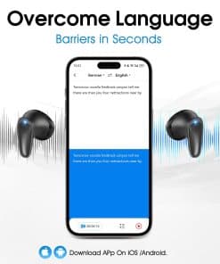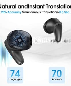 5. Diseño ergonómico para comodidad durante todo el día: Con un diseño ligero y ergonómico, estos audífonos traductores en tiempo real garantizan un ajuste seguro y cómodo para uso prolongado. Están diseñados para durabilidad y conveniencia, haciéndolos ideales para largas reuniones de negocios, viajes o uso personal.