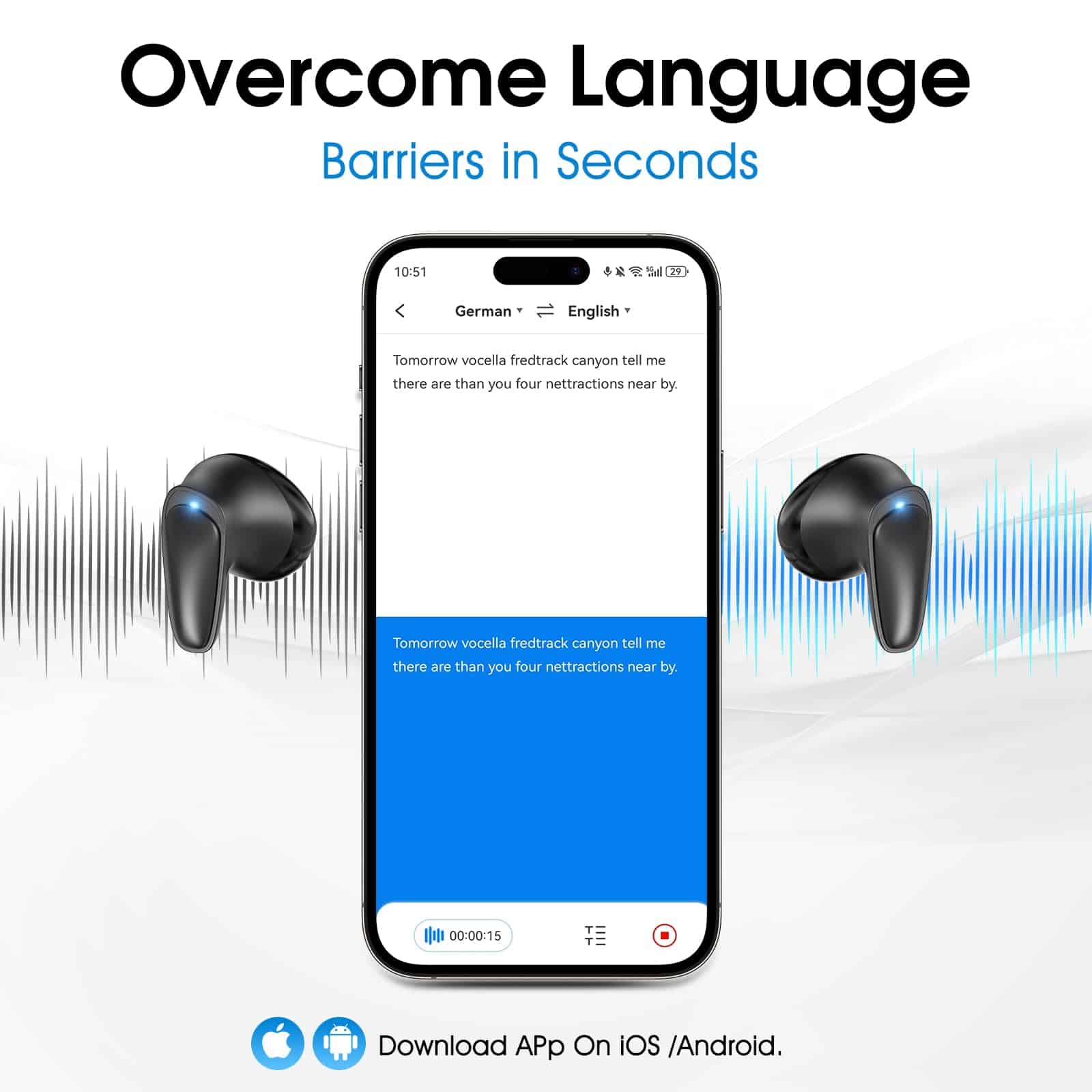 3. Calidad de sonido HD cristalina: Equipados con tecnología avanzada de sonido HD, estos auriculares traductores brindan un audio nítido y puro. Ya sea que estés escuchando música, atendiendo llamadas o usando los auriculares traductores en tiempo real, disfrutarás de una experiencia envolvente y de alta calidad.