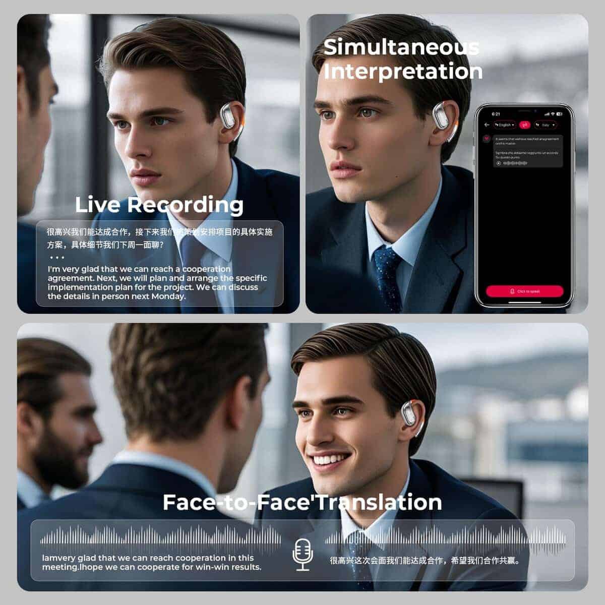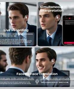 1. Soporte de Traducción Multilingüe: Estos audífonos de traducción Bluetooth en gancho proporcionan traducción bidireccional en tiempo real en 134 idiomas (solo descargue la APP), cubriendo la mayoría de países y regiones en el mundo, permitiéndole comunicarse fácilmente con personas de diferentes países, perfecto para viajes, negocios o estudio. 2. Audífonos de alta calidad: Estos audífonos de traducción en tiempo real brindan 7 horas de duración de batería extendida y un 98% de precisión en la traducción. También cuentan con un retraso de traducción extremadamente bajo, superando a la mayoría de los audífonos de traducción en la industria. Adecuados para varios escenarios: Ya sea para viajar, trabajar, estudiar o comunicarse diariamente, estos audífonos de traducción pueden garantizar que disfrute de una experiencia de traducción de alta calidad, para que ya no tenga que preocuparse por las barreras del idioma.
