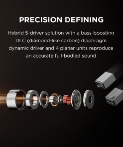 1. Reproducción fiel del sonido: Estos auriculares Monitor in-Ear cuentan con un avanzado diseño híbrido de 5 conductores con soporte Hi-Res, ofreciendo una escena sonora expansiva con una claridad increíble. El controlador dinámico DLC y cuatro unidades planares exclusivas cubren todos los rangos de frecuencia, proporcionando un sonido rico y completo que captura cada detalle.