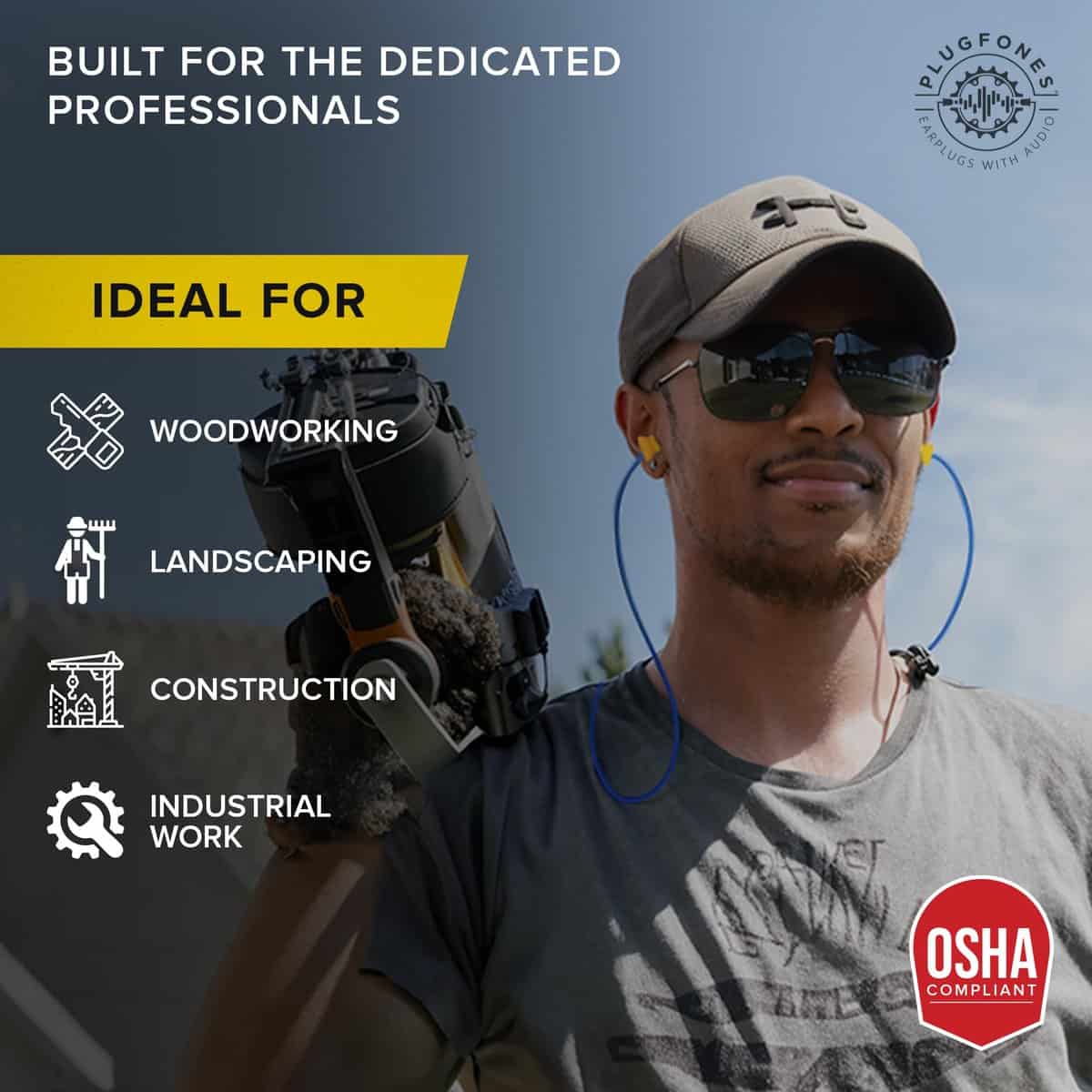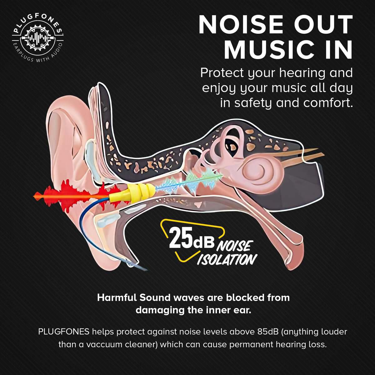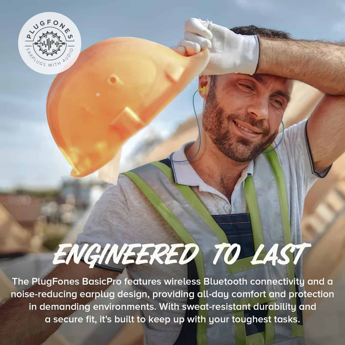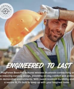 Audífonos In-Ear Plugfones Basic Pro con Micrófono y Control de Ruido Bluetooth Inalámbricos brindan la combinación perfecta entre protección auditiva y calidad de sonido. Los tapones para los oídos con certificación de seguridad y altavoces sintonizados ofrecen una protección auditiva superior y un sonido claro y envolvente. Con tecnología inalámbrica Bluetooth 5.0, supresión de ruido SoundSeal y resistencia a la humedad, Basic Pro es ideal para entornos laborales ruidosos. Además, su batería de larga duración con QuickCharge te permite disfrutar de hasta 10 horas de reproducción con solo 1.5 horas de carga. Los auriculares cuentan con Calificaciones de Reducción de Ruido (NRR) certificadas por ANSI de 25 dB y son cumplidores con las normas de OSHA cuando se utilizan según las regulaciones de OSHA. Los cables flexibles ofrecen comodidad y libertad de movimiento, con un clip ajustable para una perfecta sujeción. Disfruta de la combinación de protección auditiva y calidad de sonido con los auriculares In-Ear Plugfones Basic Pro.