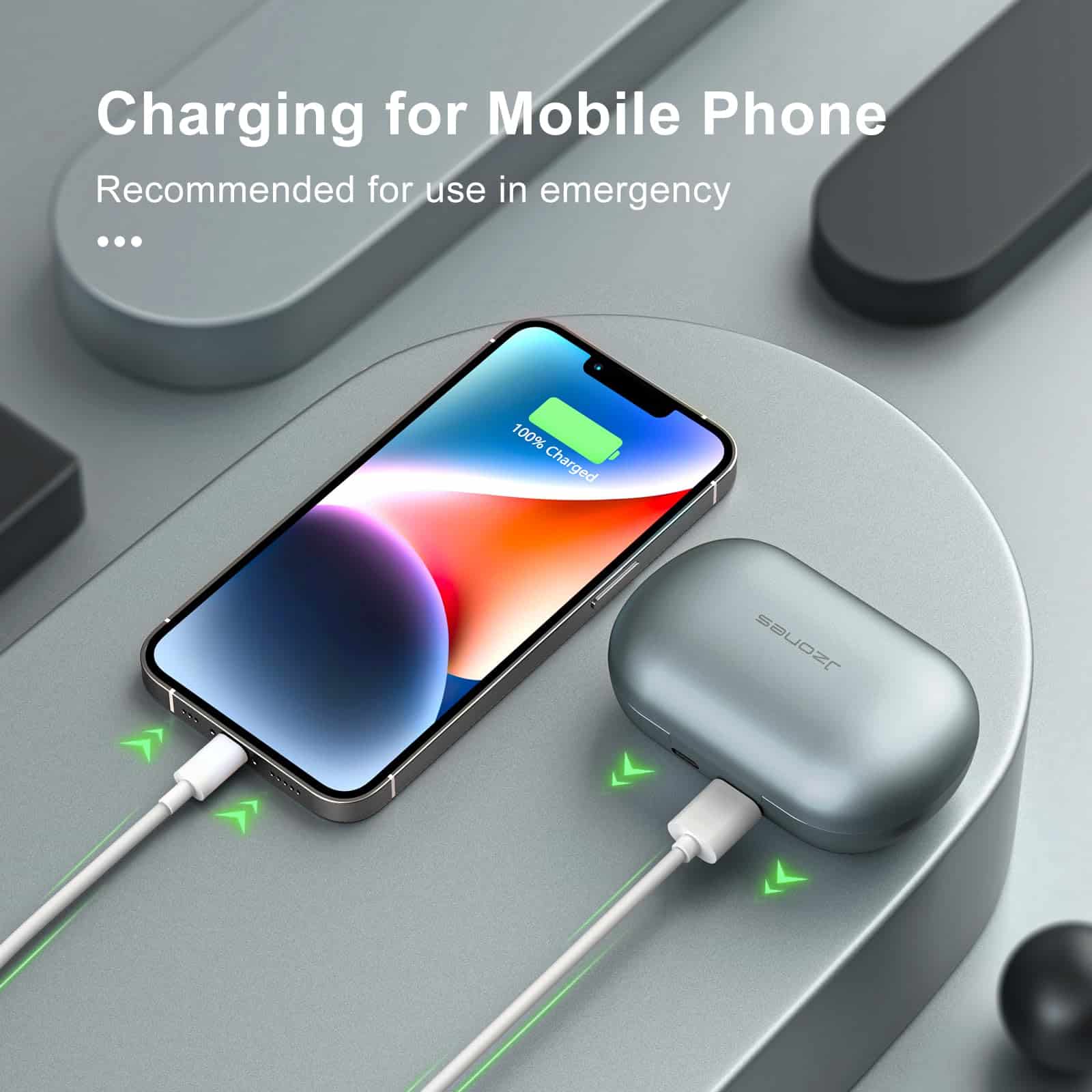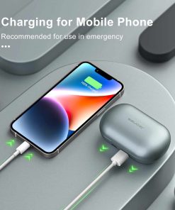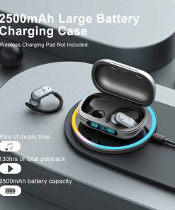 1. Estuche de carga inalámbrica con pantalla LED: El estuche de carga de 2500 mAh soporta hasta 16 cargas completas para los audífonos inalámbricos y te permite disfrutar de más de 130 horas de música. Cada audífono puede obtener 8 horas de reproducción con una sola carga. El estuche de carga puede cargar tu teléfono como una banco de energía de emergencia. El estuche es compatible con Type-C y cargador inalámbrico. La pantalla LED muestra el estado de carga de los audífonos y del estuche de carga.