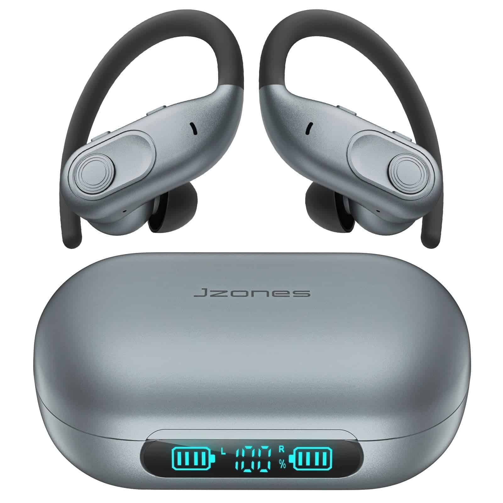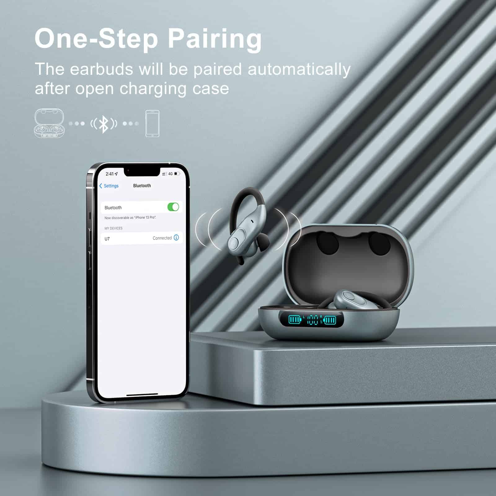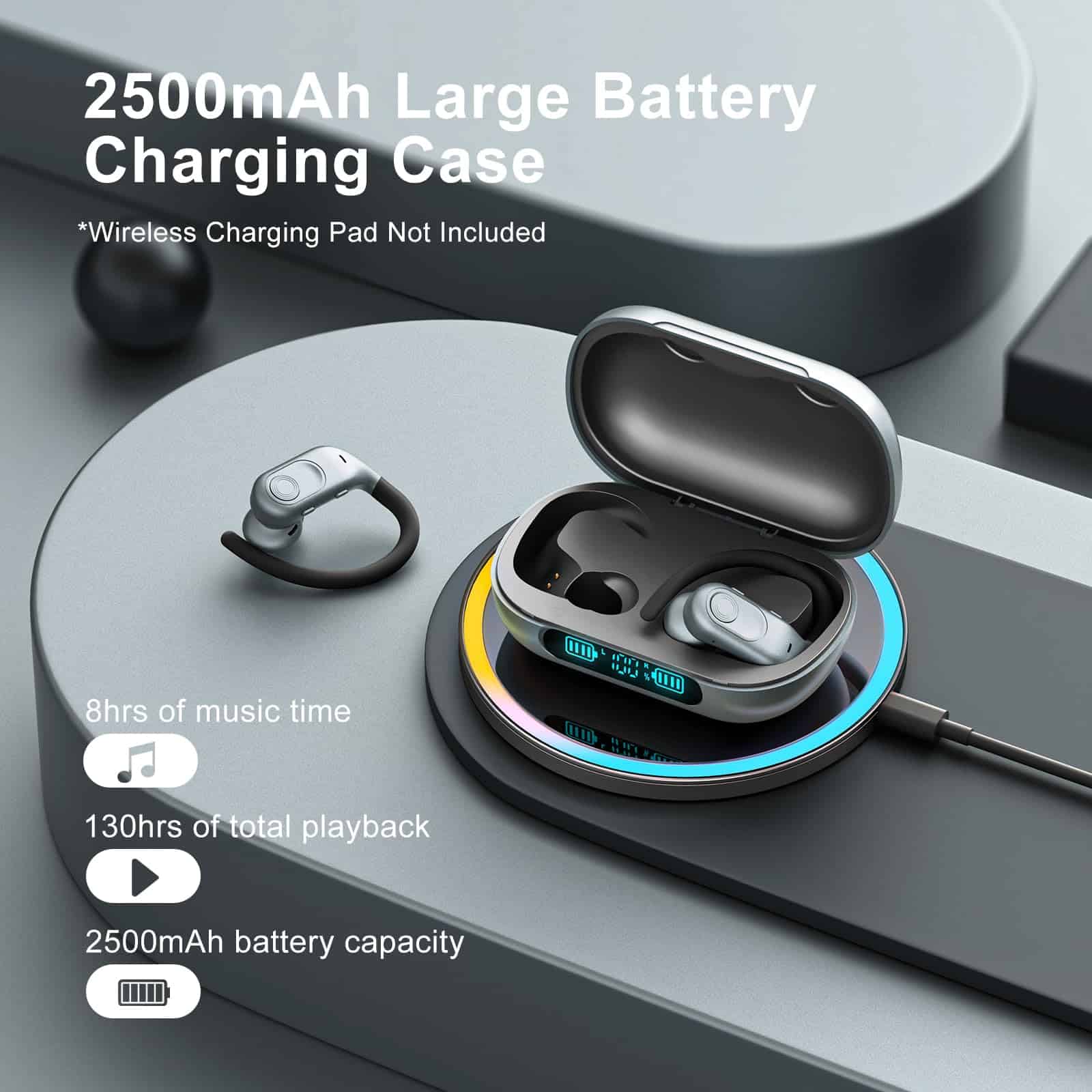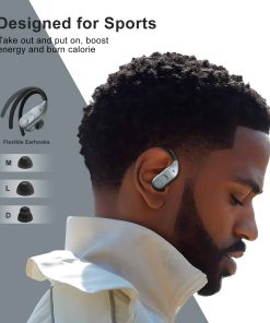 4. Ganchos para las orejas ergonómicos y ligeros: Ganchos para las orejas de silicona súper ligeros y ergonómicos aseguran un ajuste seguro y cómodo para cualquier oreja. El ejercicio prolongado no hará que se caigan o ejerzan presión en la oreja. Equipados con 3 pares de tapones para los oídos, que pueden permanecer en tus oídos y obtener un ajuste adecuado. Estos auriculares inalámbricos son muy adecuados para deportes, trabajo, conducción, etc.
